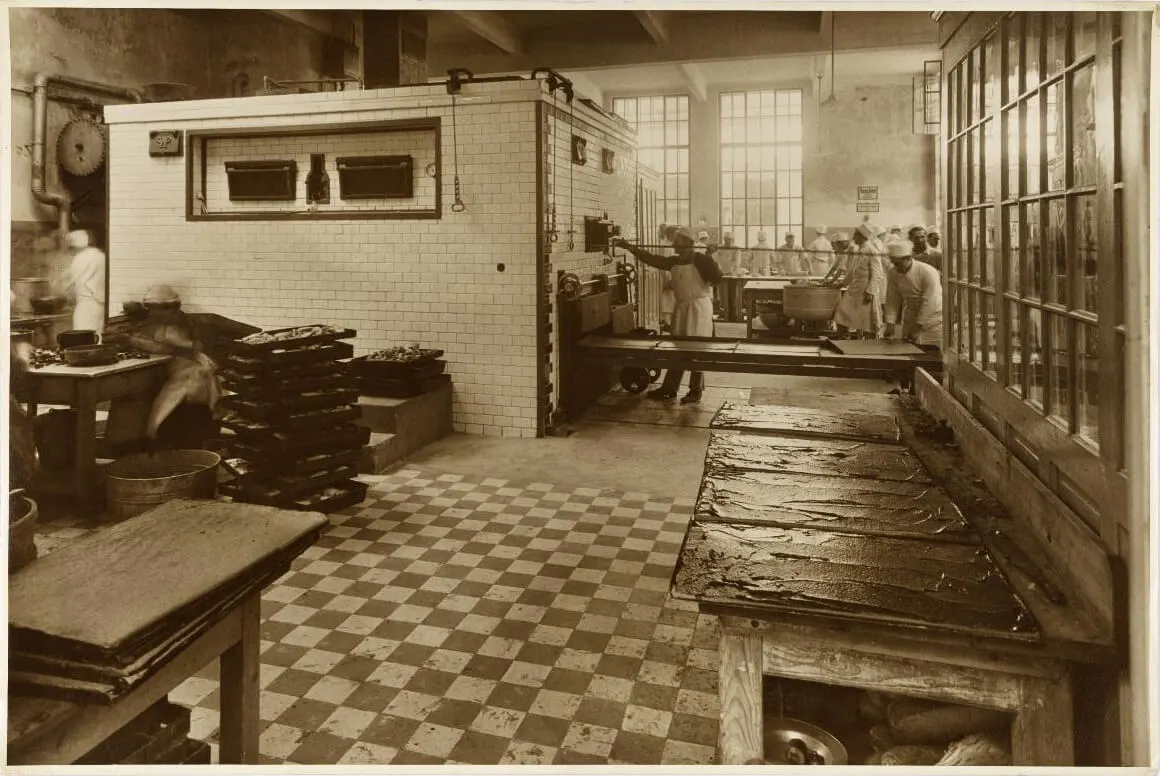 Als Neuheit bot diese Filiale neben dem üblichen Speisesaal mit Tischen für bis zu vier Personen auch ein sogenanntes amerikanisches Büffet, in dem man auf drehbaren Sesseln wie an einer Bar an zwei langen, hohen Büffets mit besonders schneller Bedienung sitzen konnte. Das Adjektiv „amerikanisch“ sollte also Rationalisierung, Effizienz und Beschleunigung signalisieren, die damals vieldiskutierten Modernisierungsimperative, die man in Europa nach US-amerikanischem Vorbild ebenfalls umzusetzen versuchte. Ein weiteres „amerikanisches“ Detail: War eine Speise schon ausverkauft, so leuchtete auf einer Anzeige über dem Fenster zur Küche die Nummer der betreffenden Speise auf. Auch für das Personal brachte diese Filiale Erleichterung, denn mit Hilfe von kleinen Wägelchen konnten beispielsweise die schweren Suppenkessel an die einzelnen Tische gefahren werden.