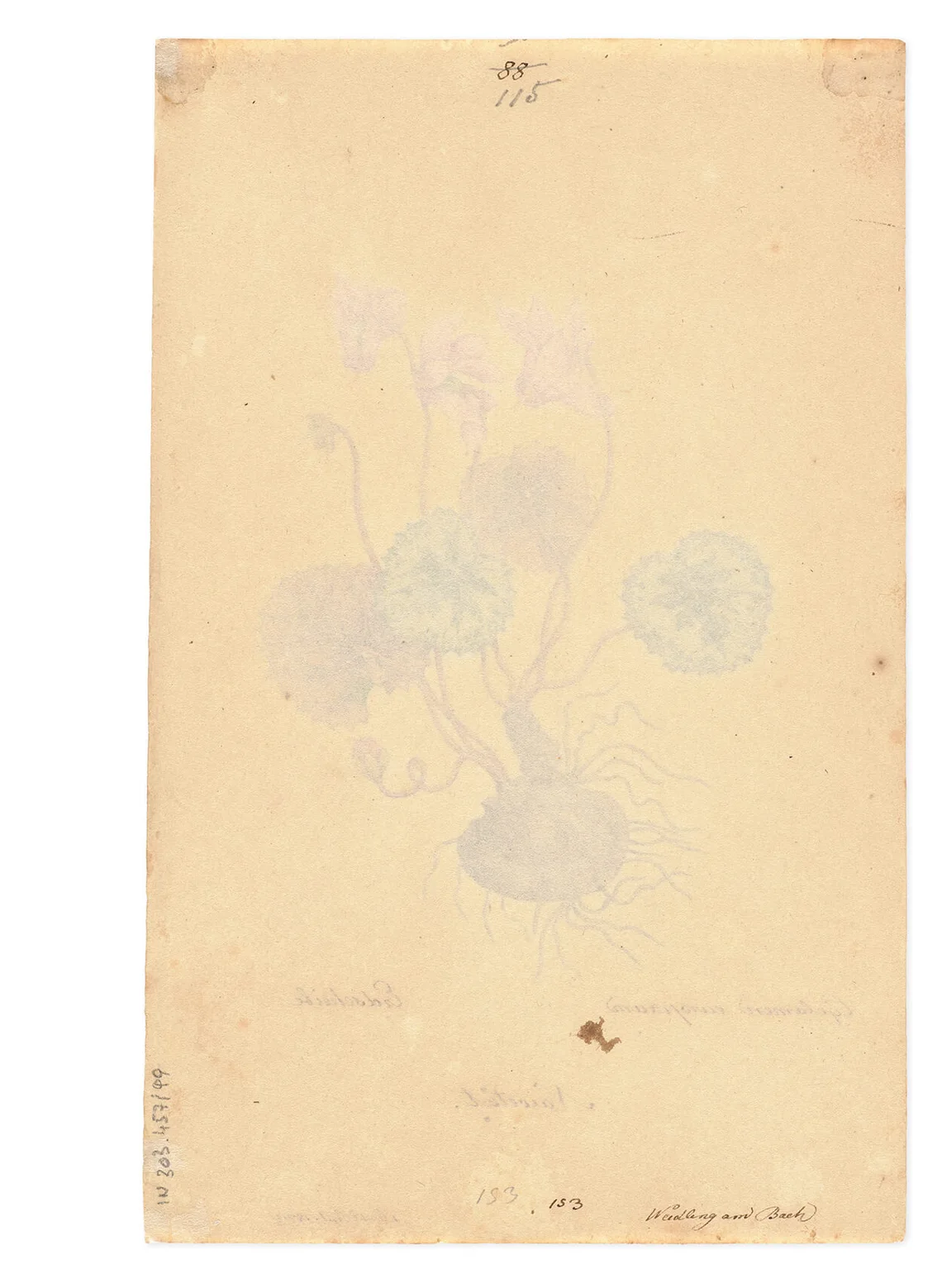 Die Inventarisierung der Blätter erfolgte gemäß dem chronologischen Grundschema des Konvoluts geordnet nach Entstehungsdatum – und nicht etwa nach Pflanzenfamilien. Bei den Blättern ohne Jahresangabe halfen dabei die fortlaufenden Rückseitennummern. Diese Nummerierung weist allerdings einige Lücken auf. Es ist also davon auszugehen, dass Blätter fehlen und die Pflanzensammlung ursprünglich noch größer war. Die höchste Rückseitennummer unseres 285 Aquarelle umfassenden Konvolutes lautet 350, es könnte also bis zu 65 Blätter mehr gegeben haben.