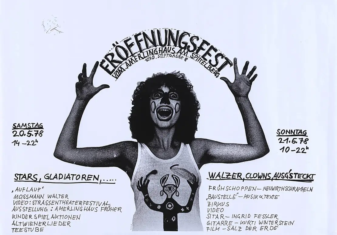 Man kann sich die Amerlinghaus-Besetzungstruppe also als wilde Mischung vorstellen. Künstlerische, ästhetische, politische, basisdemokratische und utopische Vorstellungen verwoben sich miteinander, die Gemengelage war komplex. Über eines war man sich allerdings vollkommen einig: Selbstverwaltung! So beschreibt es Lisa Grösel, die über zwanzig Jahre lang Mitarbeiterin und Mitgestalterin des Amerlinghauses war. „Zwar hatten die Besatzer:innen kein vollständig ausgearbeitetes Konzept für das Kulturzentrum Spittelberg, aber das war ihnen klar: Die Stadt sollte sich heraushalten, die Verwaltung sollte ihnen überlassen werden.“