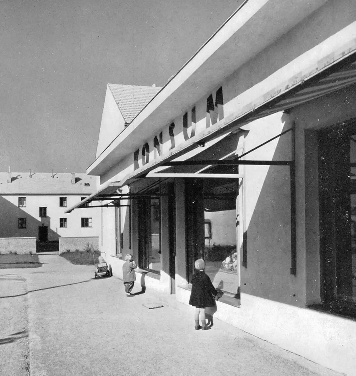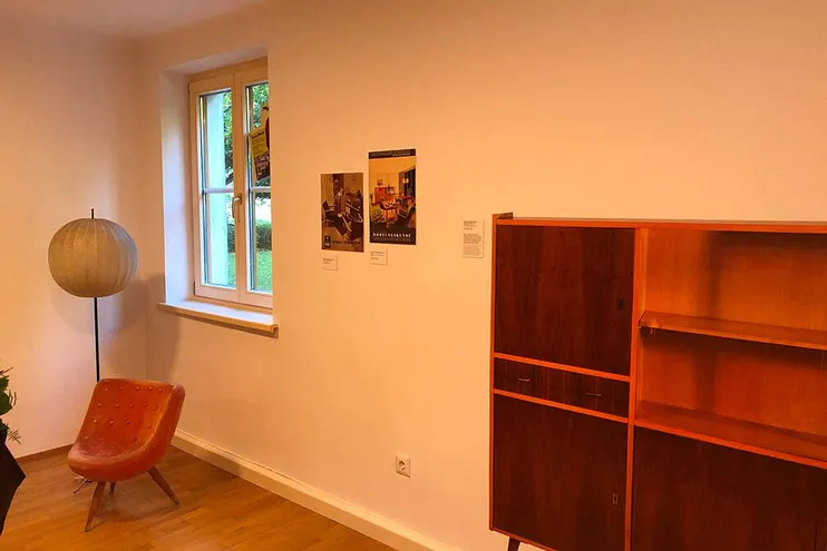 Parallel zum Schnellbauprogramm wurde 1950 die Aktion „Soziale Wohnkultur“ ins Leben gerufen. Initiatoren waren die Stadt sowie die Gewerkschaft Bau-Holz, die namhafte Architekten engagierten, um günstige und zeitgemäße Möbel insbesondere für Kleinwohnungen zu entwerfen. Zu den Designern zählten neben dem Architekten der Siedlung Franz Schuster, Roland Rainer oder der aus der Emigration zurückgekehrte Oskar Payer, der mit seinen Wohnbroschüren bekannt wurde und Mitinitiator der vom Publikum gestürmten Großausstellung „Die Frau und ihre Wohnung“ im Messepalast war. Schon der Titel der Ausstellung vermittelt, dass die Adressatin der neuen Wohnkultur der 1950er-Jahre die moderne Hausfrau war, womit auch die strikten Geschlechterrollen der Zeit angesprochen sind. Die Serienproduktion von Möbel im Rahmen der Aktion „Soziale Wohnkultur“ startete 1954. Zehn Firmen mit 450 ArbeiterInnen erzeugten Vitrinenschränke, Klappbetten, Sitzbänke oder Küchenmöbel, die von lokalen Händlern angeboten und in Raten bezahlt werden konnten. Die Möbel, die heute in Sammlerkreisen hochgeschätzt sind, waren dennoch für viele nicht leistbar und für die beengten Wohnverhältnisse oft zu wenig flexibel.