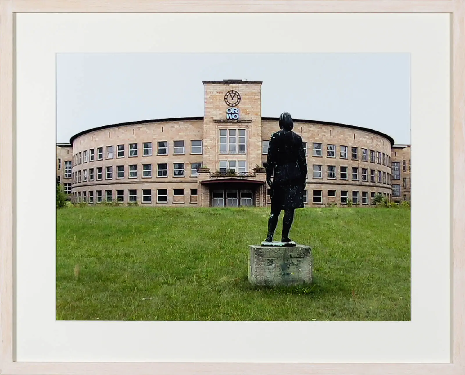 Die Chemiearbeiterin auf dem Sockel vor dem Fabriksgelände, von Isa Rosenberger 2004 am Set für einen dokumentarischen Film über Schrumpfende Städte fotografiert, stand stellvertretend für die vielen Frauen, die im einst größten Frauenbetrieb der DDR, der Chemiefabrik ORWO (ursprünglich Agfa, gegründet 1909) in Wolfen, gearbeitet hatten und mit dem Ende der Ära von ORWO – vor allem, weil die Herstellung von Farbfilmen nicht die erwünschte Qualität brachte – arbeitslos geworden waren. Als Isa Rosenberger ein Jahr später zurückkehrte, war der Sockel leer. Dafür konnte sie die Frau, die 1964 dem Bildhauer Gerhard Markwald für die lebensgroße Bronzeskulptur der Chemiearbeiterin Modell gestanden hatte, ausfindig machen. Sie bat Magdalena Brandl, den Sockel vor dem ehemaligen Verwaltungsgebäude der ORWO-Filmfabrik zu erklimmen. Von dort blickt sie auf die Geschichte der Arbeitslosigkeit, auf den Abbruch des einst größten europäischen Filmwerks sowie auf das Ende der analogen Fotografie.