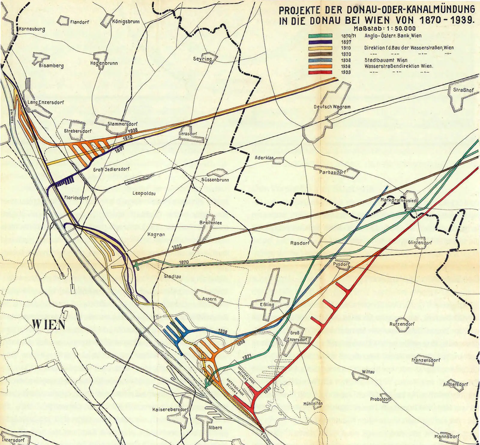 Die Donau sollte laut „Vierjahresplan“ durch die Errichtung des Donau-Oder-Kanals bis 1945 zur Reichswasserstraße ausgebaut und damit Teil eines europaweiten Wasserstraßennetzes werden. Dafür nahm die NS-Planung Anleihen an bereits bestehenden Planungen aus dem 19. Jahrhundert, die sich ihrerseits auf die Vision Karls IV. für ein europäisches Wasserkanalnetz stützten. Wien war innerhalb dieses Verkehrsnetzes mittels Binnenhafenkonzept zum „Hamburg des Ostens“ bestimmt.