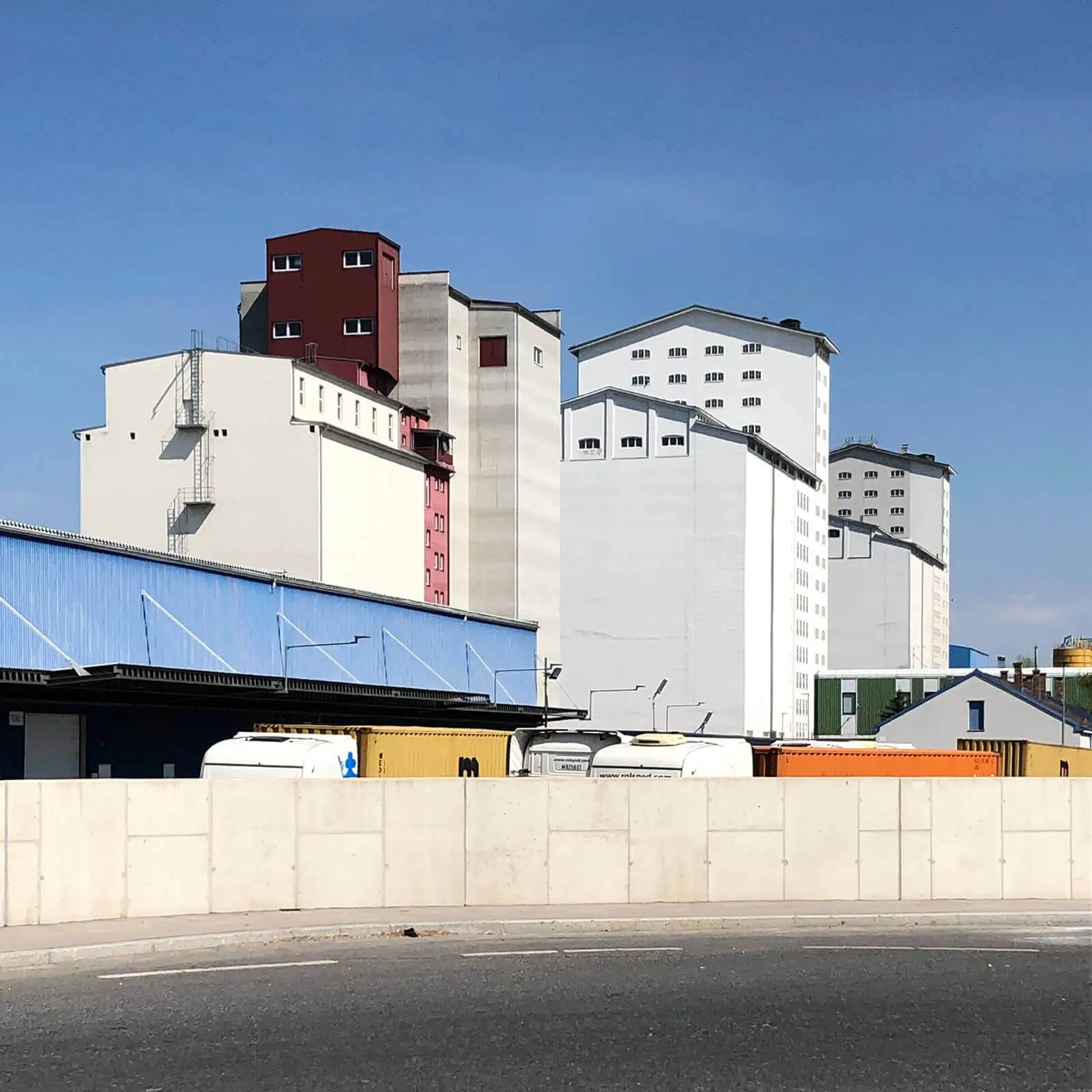Ich war noch nie in meinem Leben so viel auf Google Maps und Google Earth unterwegs wie derzeit. Das sind hilfreiche Tools, um vage Eindrücke konkret zu machen. In Floridsdorf beispielsweise habe ich mir eingebildet, Pittsburgh gefunden zu haben. Aber natürlich musste ich nachrecherchieren, ob meine Assoziation überhaupt der Realität entspricht: Stimmt das? Gibt es diese Art von Industriebauten und Fabrikhallen aus dieser Zeit? Mit dieser Farbigkeit und in dieser Größe? Oder ist das alles nur ein Trugbild? Vieles fotografiere ich im Vorbeifahren, weil ich mir denke: Ah, das ist strange und irgendwie untypisch für Wien. Oder aber es ist wie ein Déjà-vu! Das habe ich doch schon einmal irgendwo gesehen, bloß finde ich es in meinem Kopf nicht. Manchmal fügen sich die Bilder dann aber doch noch zusammen, oft erst Wochen später, und plötzlich gibt es eine Entsprechung.