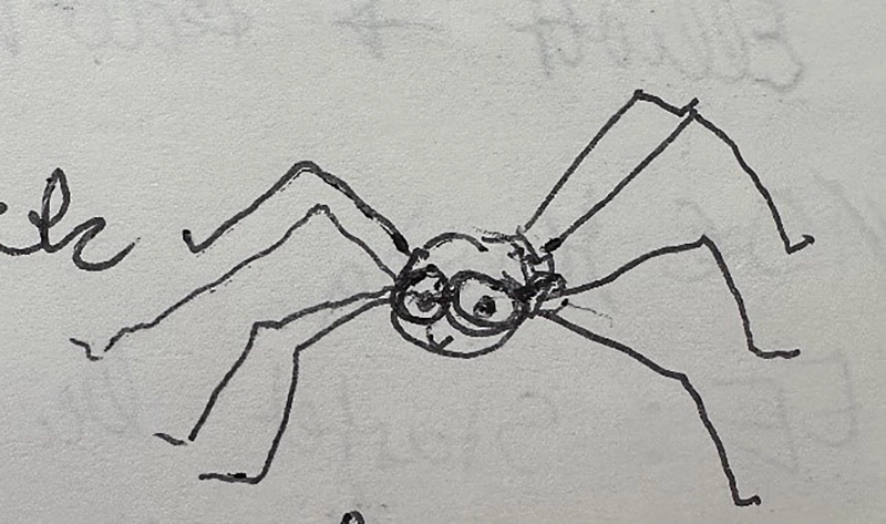 Neben dem sprachlichen Feilen fand auch der grafische Findungsprozess statt und natürlich auch das Ausbügeln von Stolperstellen in unser Storyline. Ein wichtiger Meilenstein war die Erschaffung eines treuen Begleiters, denn die Großtante, die uns ihre Briefe mit den Anweisungen zur Findung ihrer Uhr hinterlassen hatte, war ja tot. Aus einer kleinen, krakeligen Zeichnung wurde der Weberknecht Lou. Angelehnt an den Namen des berühmten Uhrmachers Abraham-Louis Breguet, aber doch offen für Interpretation, denn es gab auch zahlreiche, unbekannte Uhrmacherinnen und Uhrmachertöchter (Louises und Louisas und natürlich viele andere ohne Lou), deren Wirken mindestens ebenso wichtig war.