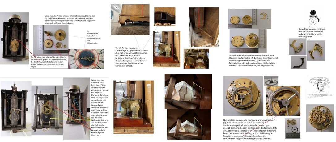 In der Ausarbeitung der Spielstruktur war es nun wichtig eine gute Balance zwischen spannenden, neuen Rätseln und widerkehrenden Rätselstrukturen zu finden. Aus diesem Grunde haben wir deswegen unsere Rätsel thematisch nach Metaebenen sortiert: Eine Ebene beleuchtet die Uhr als wissenschaftliches Instrument, dafür eigneten sich einige größere astronomische Uhren, aber auch eine Sonnenuhr. Eine weitere Ebene hebt die Unterhaltsamkeit, Schönheit und Besonderheit der Objekte hervor, „conversation pieces“ also, gut zum Angeben oder freudigen Herzeigen und Teilen. Dazu gehören zum Beispiel Uhren mit kleinen, beweglichen Figuren, Kuckucksuhren aber auch außergewöhnliche Armbanduhren. Die dritte Ebene fokussiert die Aufgabenstellung und das Rätsel auf mechanische und technische Eigenschaften: Wie wird hier eine Bewegung ausgelöst, welche Räder greifen wie ineinander und wo zieht man diese Uhr überhaupt auf?