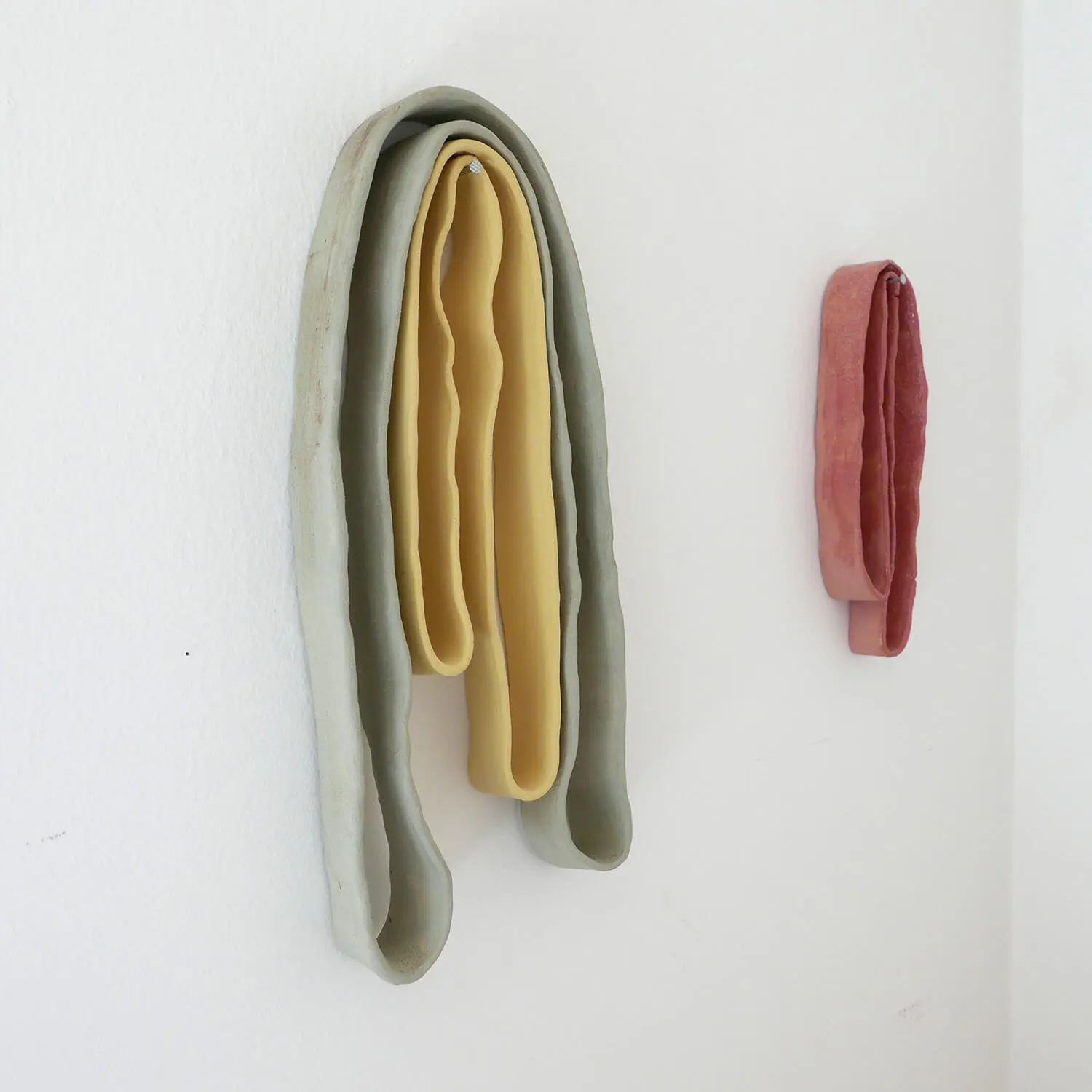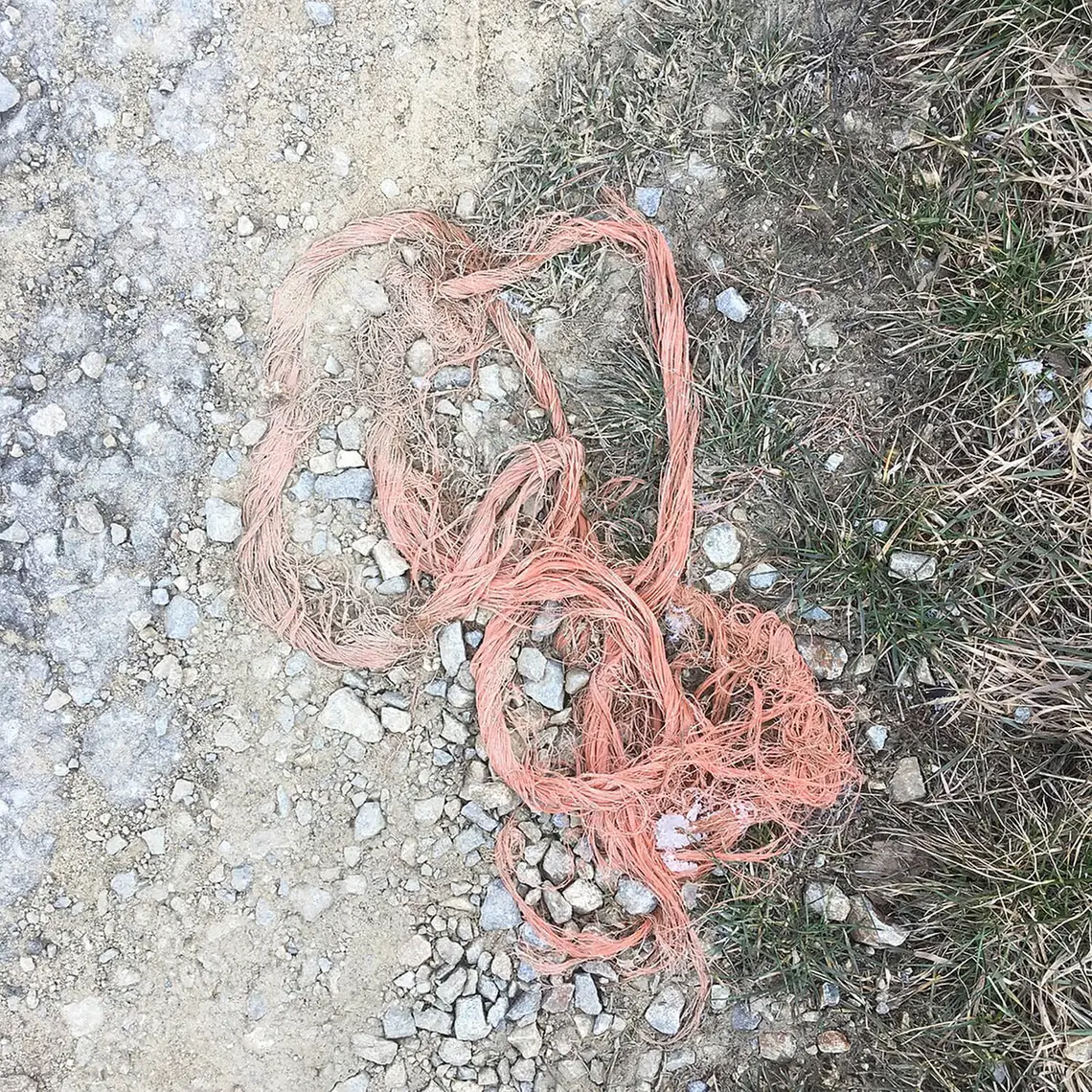 Ausgangspunkt, Denkfläche und Inspiration für neue Arbeiten findet Lukas Hochrieder in Räumlichkeiten, die ihn umgeben, bei Spaziergängen durch den Stadtraum oder am Land. Oft sind es einfache Dinge wie z.B. alte Strohbänder, die zurückgeblieben und ihrer Funktion entledigt sind. Die Zeit hat ihre Spuren hinterlassen, die Farben sind verblasst, das Gewebe zerfällt und wird in die Erde, den Schotterweg, in ihr Umfeld, gedrückt. Genau dieser Prozess der Transformation fasziniert Hochrieder: „Sie müssen nichts mehr festhalten, ihre Stärke löst sich auf. Sie verschmelzen mit der Umwelt – sie nimmt sie in sich auf.“