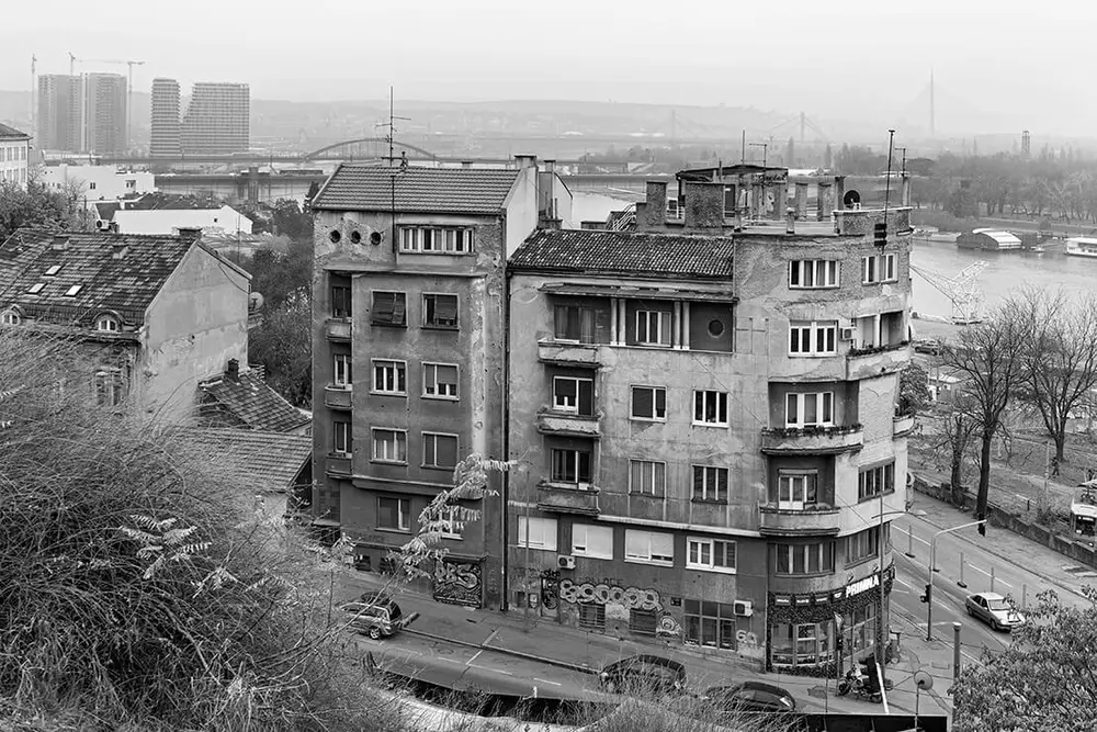 „Die daraus resultierenden urbanen Verdrängungsprozesse und Zwangsenteignungen werden auf politischer Ebene nicht nur geduldet, sondern auch bewilligt – ohne öffentliche Ausschreibungen oder Volksabstimmungen“, erklärt die Künstlerin. Zum unübersehbaren „Symbol“ wurden die ersten Betonskelette des 1,9km2 umfassenden Bauprojekts, die sich auch wie ein roter Faden durch die Fotoserie von Gaisbacher ziehen. „Überdimensionale Glas- und Stahlgebäude kontrastieren mit der historisch gewachsenen Stadt, während das Bauprojekt stadtplanerisch, ökonomisch und visuell den Alltag Belgrads dominiert. Für mich ist dies ein repräsentatives Beispiel für viele Umbrüche der Gegenwart“, so Gaisbacher.