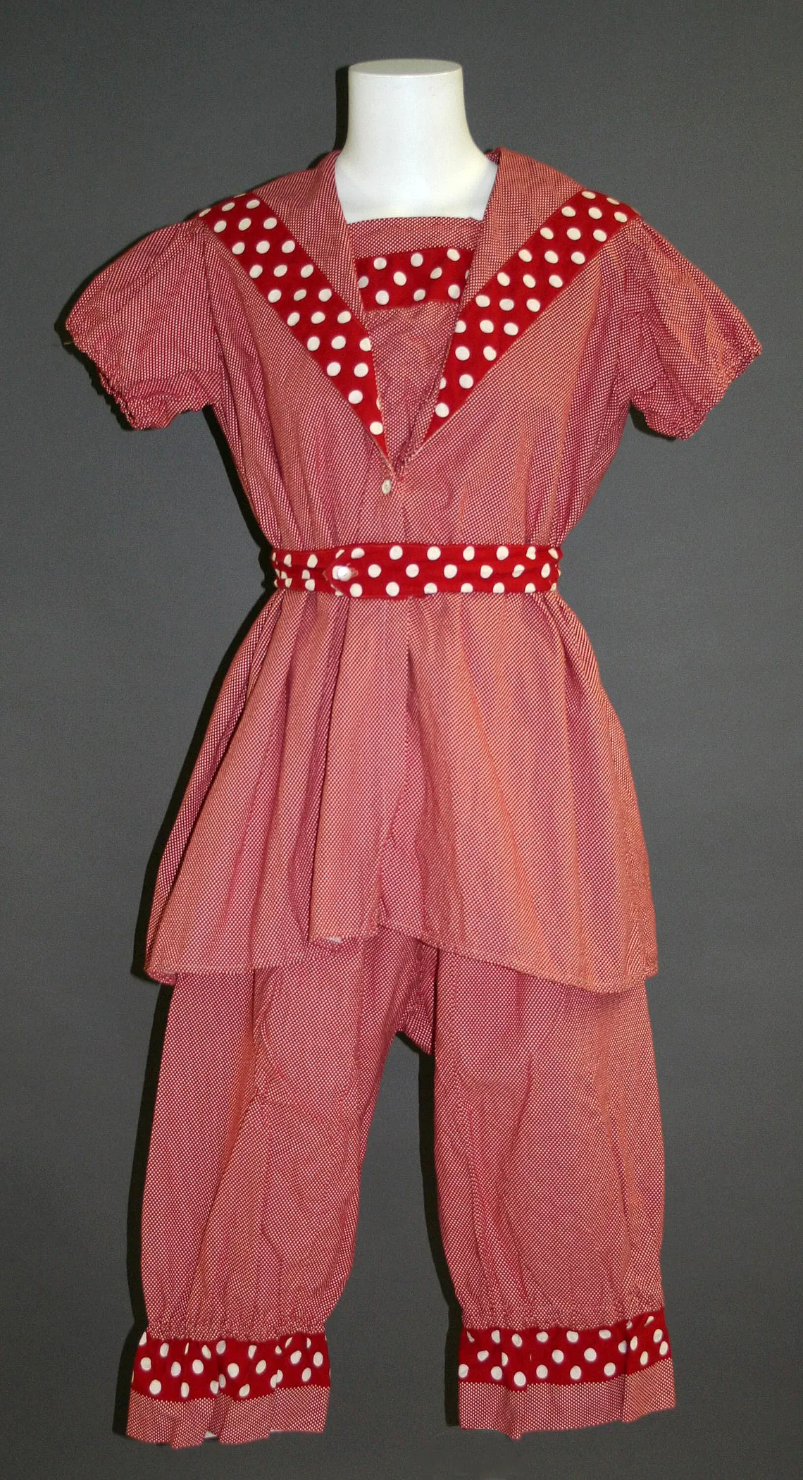 Damenbadeanzug, um 1893, Material: Baumwollgewebe, Perlmuttknöpfe, Hornknöpfe, Gummizugband, Wien Museum