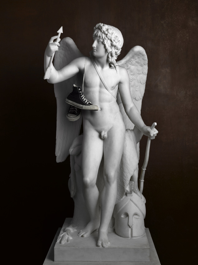 (Eine ironische Ergänzung erfuhren diese Attribute im Jahr 2011, als das dänisch-norwegische Künstlerduo Elmgreen & Dragset der Gipsfassung des Amors im Thorvaldsen Museum in Kopenhagen ein Paar Sportschuhe auf die Schulter hängten.)