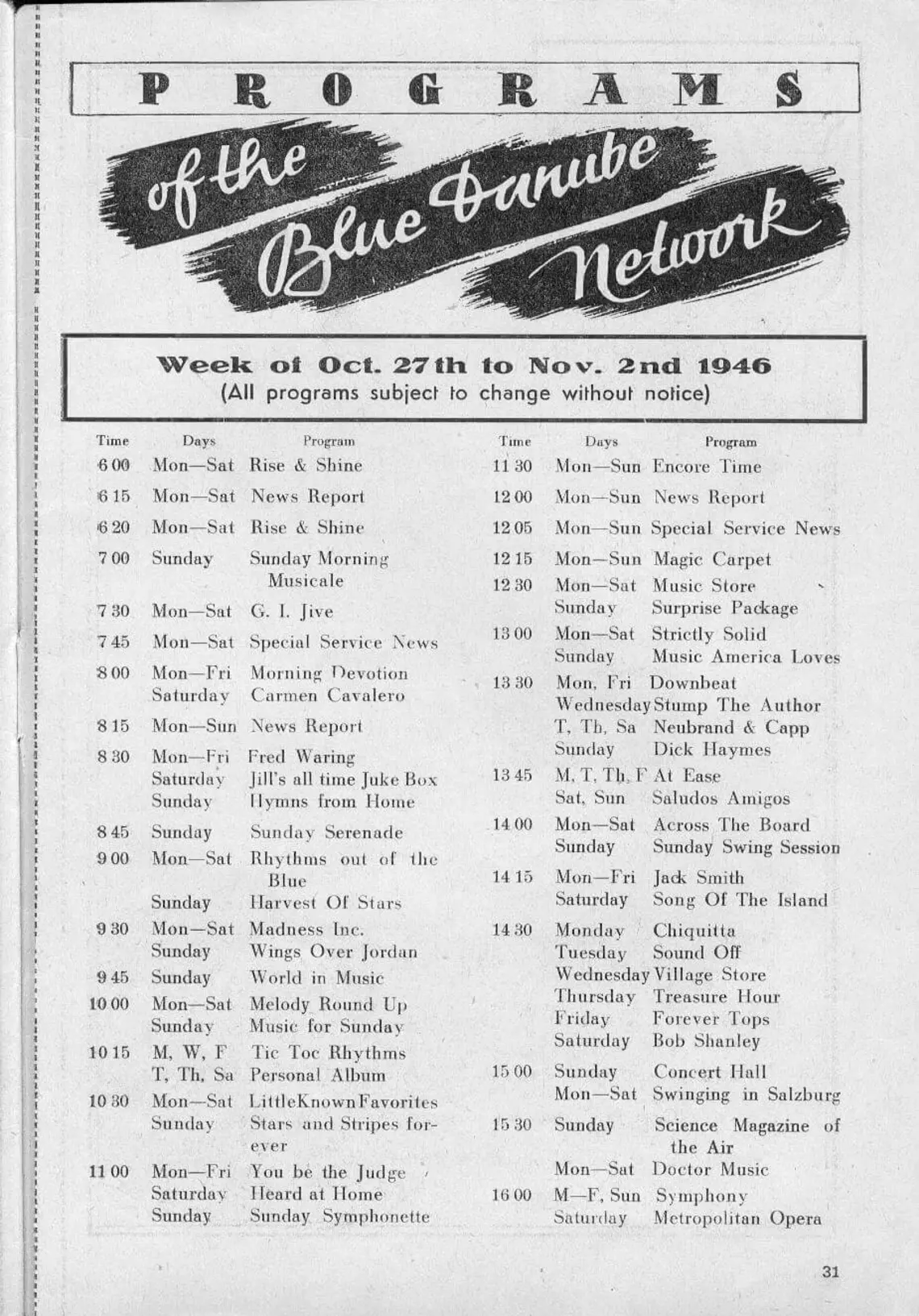 Programm des „Blue Danube Network“, Privatsammlung Dillmann