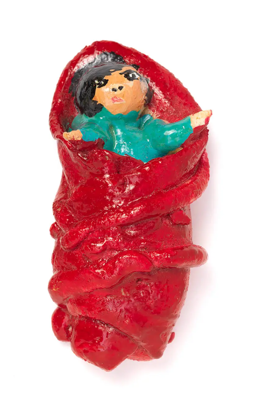 Ceija Stojka: Kathie (Schwester von Ceija Stojka) als liegende Frau, Salzteigfigur, ca. 1996, Sammlung Wien Museum