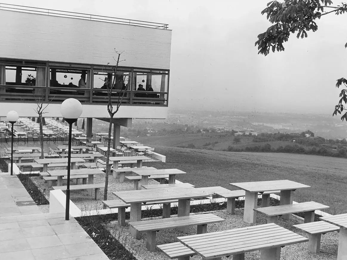 Neue bauliche Akzente wurden erst wieder in den Jahren 1961 bis 1963 gesetzt, als im Auftrag der Stadt Wien von den Architekten Wolfgang und Traude Windbrechtinger das Aussichtsrestaurant „Bellevue“ errichtet wurde. Für die künstlerische Ausstattung zeichnete Maria Biljan-Bilger verantwortlich. Die Eröffnung des Restaurants nahm der damalige Wiener Bürgermeister Franz Jonas vor (18. Mai 1963). Die flache, ausgesprochen nüchtern gehaltene Architektur des Gebäudes sollte sich zurückhaltend und unaufdringlich in die Geländeformation einfügen. Als ganzjährig geöffnetes Restaurant mit Rundblick auf Wien konzipiert, bot das Bellevue durch großzügige Innen- und Außenräume Platz für rund 2000 Besucher. Obgleich die Architekten es verstanden, durch eine abwechslungsreiche Konzeption der Räumlichkeiten jeglichen Eindruck eines Massenlokals zu vermeiden, erwies sich die nüchterne Ästhetik offenbar nicht als Publikumsmagnet. Der erhoffte wirtschaftliche Erfolg blieb aus und nach Jahren der Verwahrlosung wurde das Restaurant 1982 abgetragen.