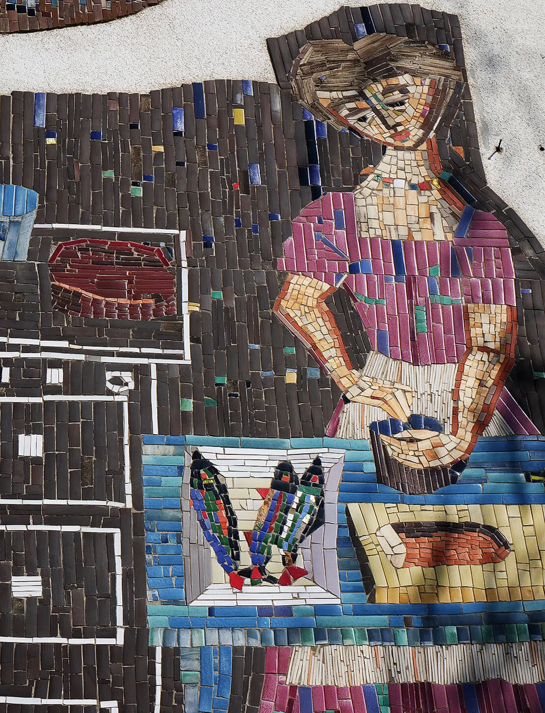 Ohne Anspruch auf Vollständigkeit lädt das Raufschaumuseum dazu ein, diesen Layer in der Stadt zu wieder zu entdecken. In der Sammlung finden sich auch Fassadenwerke privater Auftraggeber. So zierte das Mosaik der Glaserei in der Liniengasse früher das Geschäft des dazugehörigen Betriebs. Auch wenn sich nicht alle Werke sofort datieren lassen, kann man die Phasen der Zwischenkriegszeit und des Wirtschaftswunders, die die Stadt stark geprägt haben, gut erkennen.