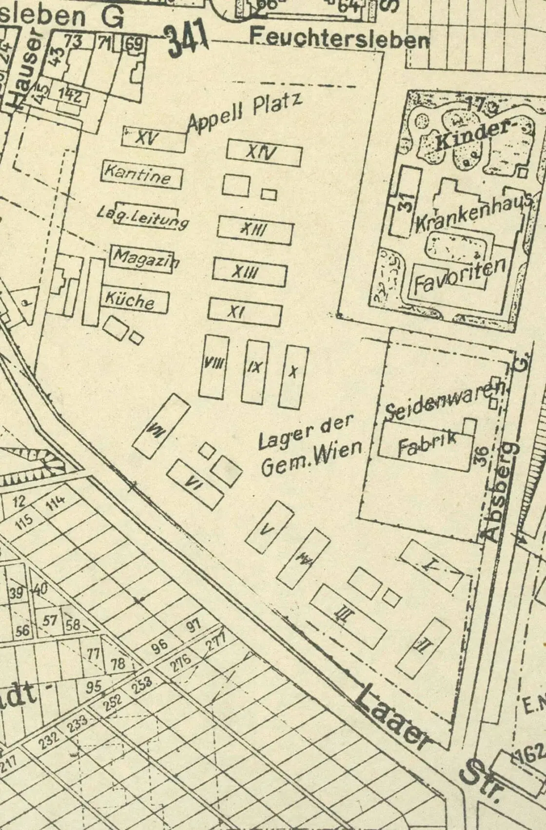 Wer aber sollte die Stollen und die Hauptausstiege bauen? Heimische Arbeiter standen großteils im Wehrdienst oder in der Rüstungsproduktion im Einsatz, sodass an deren Stelle osteuropäische Zivilarbeiter:innen und italienische Militärinternierte (IMI) zur Durchführung des Projekts herangezogen wurden. In welchen Lagern die etwa 250 bis 300 „Ostarbeiter:innen“ einquartiert waren, ist nicht exakt überliefert. Wahrscheinlich war es das Lager X in der damaligen Laaer Straße 61 oder das Lager 20-O in der Gerhardusgasse 7.