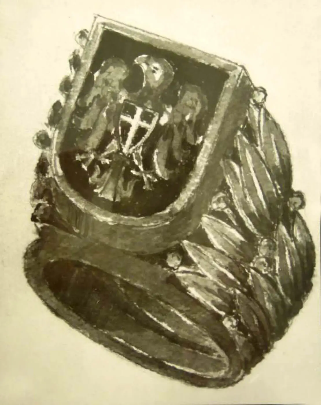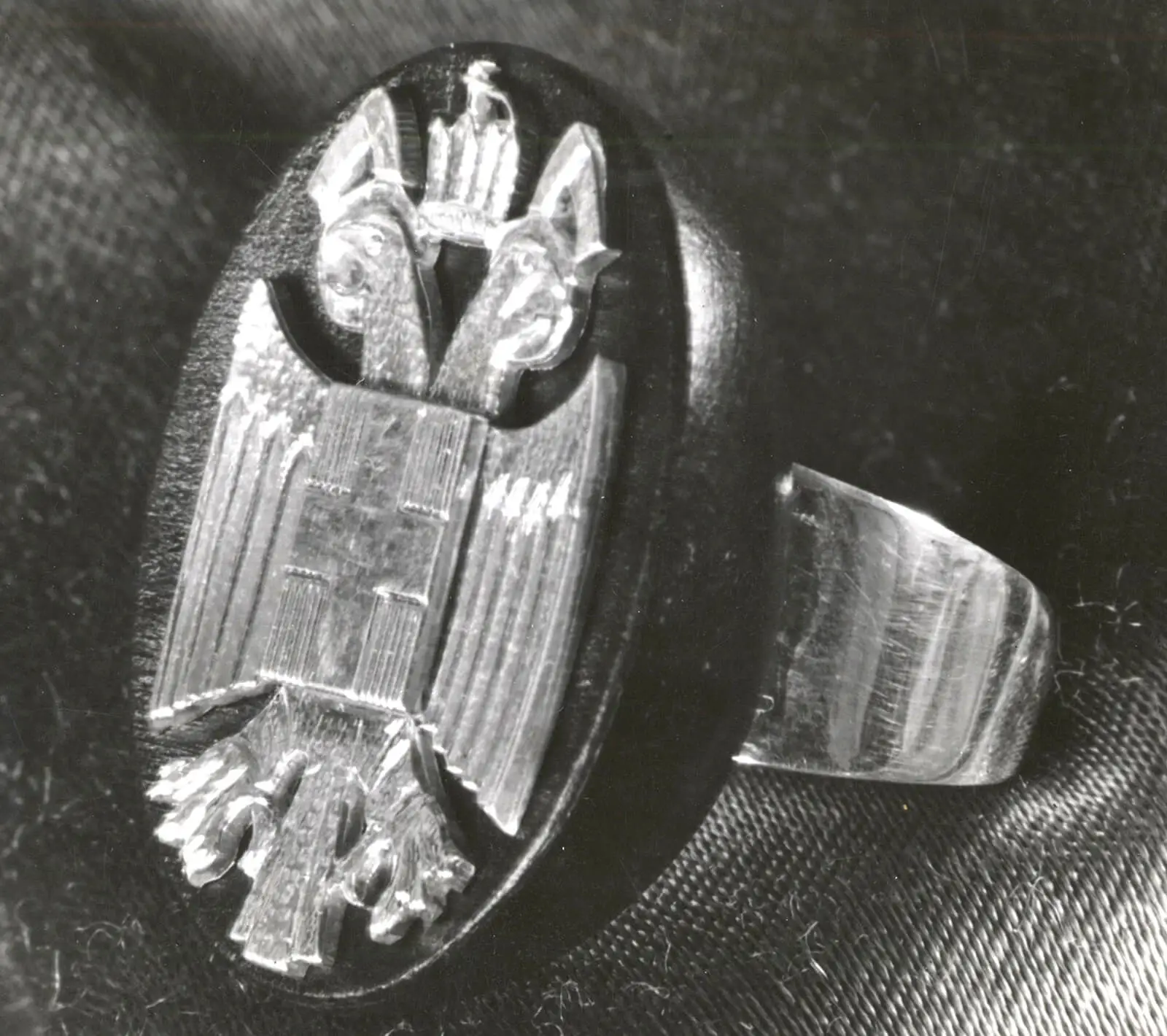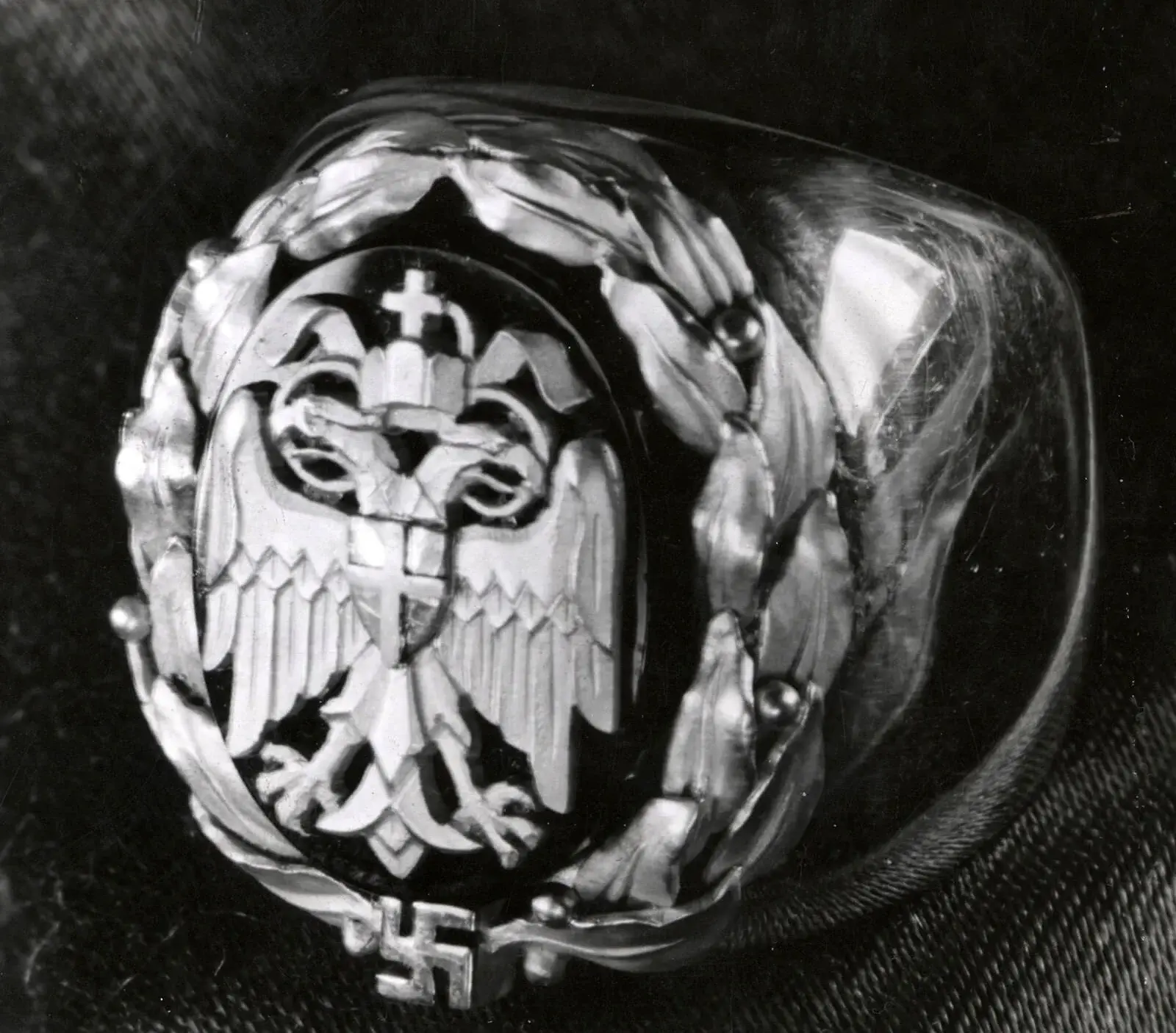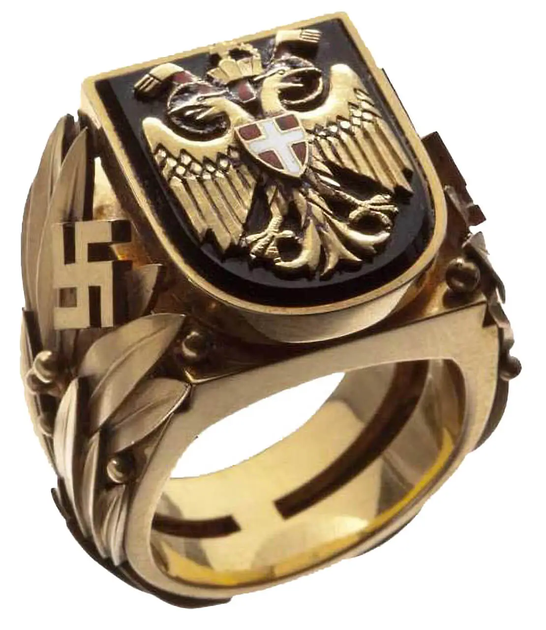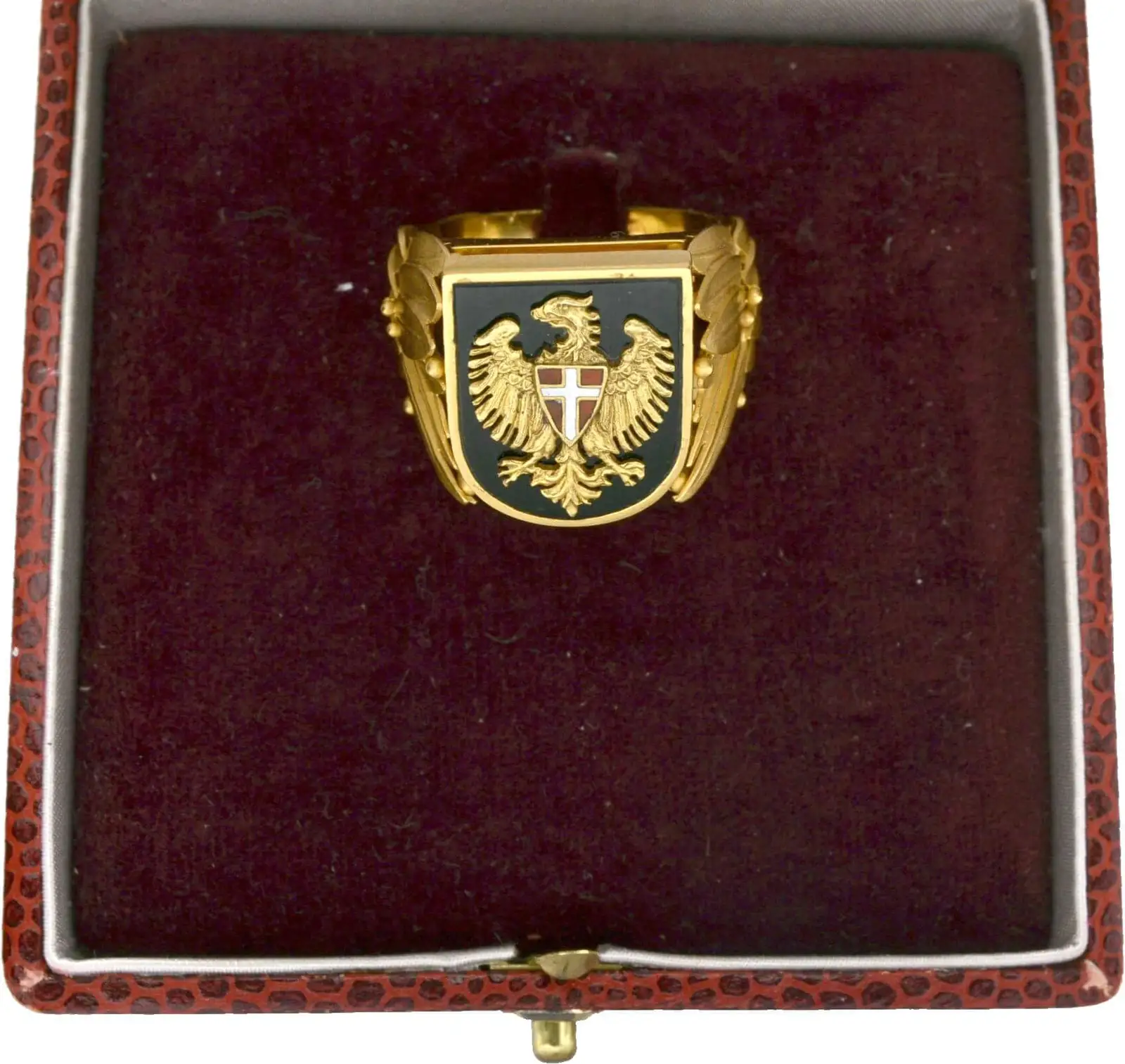 Der Ring zeigt einen auf einem schwarzen Onyx aufliegenden doppelköpfigen Adler, wie es grundsätzlich der Form des Wiener Wappens seit 1934 entsprach, mit dem einzigen Unterschied, dass nach dem Anschluss die Adlerköpfe nicht von der habsburgischen Hauskrone, sondern von der römisch-deutschen Kaiserkrone überhöht waren. Der Ring selbst besteht aus einem Reifen mit einzeln aufgelöteten Lorbeerblättern, die das Wappen links und rechts umfassen. Zu beiden Seiten des Wappens wurde jeweils ein Hakenkreuz separat aufliegend montiert.
