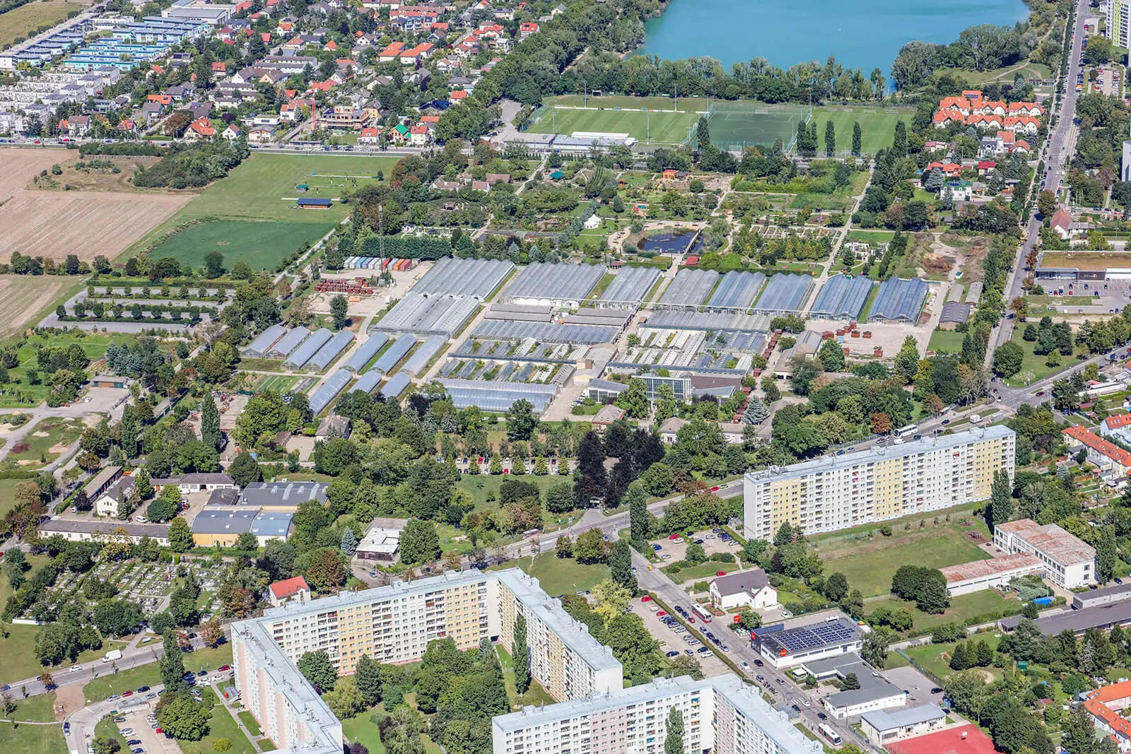 Bereits im Jahr 1949 hatte die Stadt Wien ein 19 Hektar großes Gelände in Hirschstetten erworben. Auf diesem entstand in den 1950er-Jahren der neue städtische Reservegarten. Sämtliche Gewächshäuser wurden mit Aluminiumprofilen ausgeführt, die Bewässerung mit Grundwasser erfolgte mittels zweier Pumpstationen. Im Herbst 1957 waren die Bauarbeiten so weit vorangeschritten, dass mit der Übersiedlung vom alten Standort Vorgartenstraße in die Quadenstraße Nr. 15 begonnen werden konnte. Auch vom kleinen Reservegarten auf der Hohe Warte im 19. Bezirk – auf dem Standort der einstigen Rothschild-Gärtnerei – wurden nun alle Pflanzen, vor allem Orchideen, nach Hirschstetten gebracht.