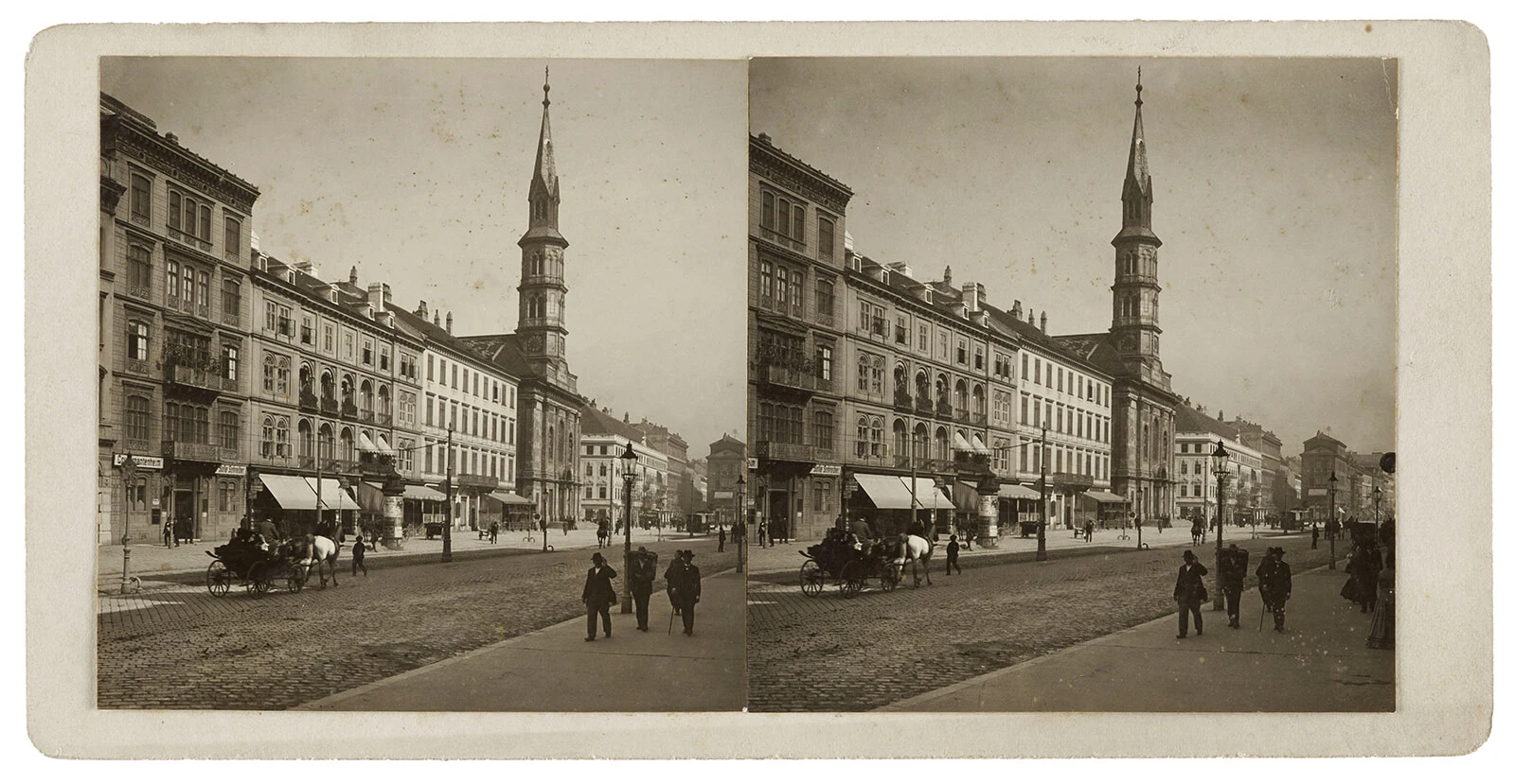Stereoskopien bieten, genau wie der Sehapparat des Menschen, zwei leicht verschiedene Bilder, die in der Wahrnehmung durch simultane Betrachtung mit einem entsprechenden Apparat miteinander verschmelzen, wodurch ein erstaunlicher tiefenräumlicher Effekt hervorgerufen wird – „körperlich zum Greifen stehen die Gegenstände vor uns“ (Pollak, Das plastische Lichtbild). Diese fotografische Bildform, die nur der äußere Anlass für eine innere, in der vorliegenden Publikation gar nicht reproduzierbare Wahrnehmung ist, ist beinahe so alt wie die Fotografie selbst, das zugrundeliegende Prinzip sogar noch länger bekannt. „Wirklichkeit“, „Lebendigkeit“, „Körperlichkeit“ und „Eroberung des Raumes“ werden dem „Raumbild“ durch seine Verfechter als Eigenschaften zugeschrieben, die es gegenüber dem „Flachbild“ auszeichnet. Gewöhnliche Aufnahmen, so formulierte es etwa der erste Vorstand der Österreichischen Gesellschaft für Stereoskopie, Eduard Hans Tropsch, geben „noch keine lückenlose Vorstellung des in Wirklichkeit Erschauten – es fehlt ihnen das Räumliche, die Körperlichkeit und das Leben. In der gewöhnlichen, der `einlinsigen´ Photographie kann der Raum nur auf einer Fläche vereinigt werden. Die natürliche Darstellung des Räumlichen und Körperlichen bleibt aber das uneingeschränkte Vorrecht der Stereoskopie, der räumlichen oder plastischen Photographie! Und so ist Stereophotographie gleichbedeutend mit der Eroberung des Raumes. Wie der zweiäugige Mensch dem einäugigen überlegen ist, so ist es die Stereokamera dem einlinsigen Apparat gegenüber.“ (Tropsch, Die zweiäugige Kamera) Während sich letzterer auf die Bannung des Raumes auf eine Fläche beschränken muss, öffnet die Stereoskopie den Raum für den Betrachter und bietet eine grundsätzlich andere, auch intimere Form der Wahrnehmung – der Betrachter, schon durch den notwendigen Betrachtungsapparat von seiner Umgebung abgeschieden, ist gleichsam selbst im Bild und bewegt sich, heutigen virtual-reality-Szenarien nicht unähnlich, sehend durch dieses.
