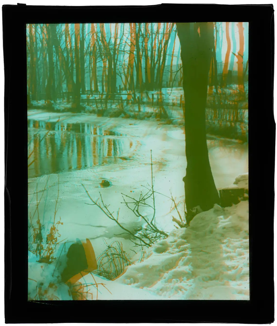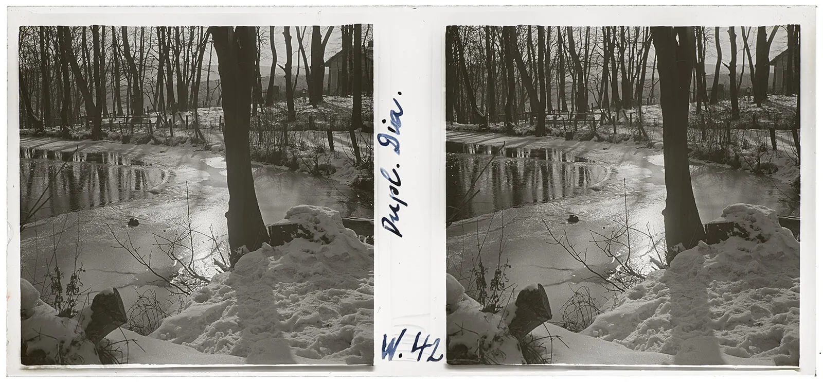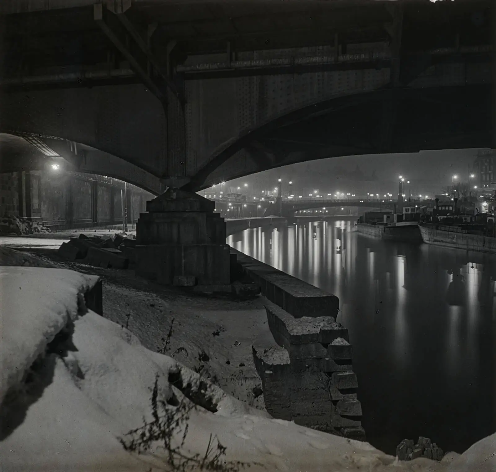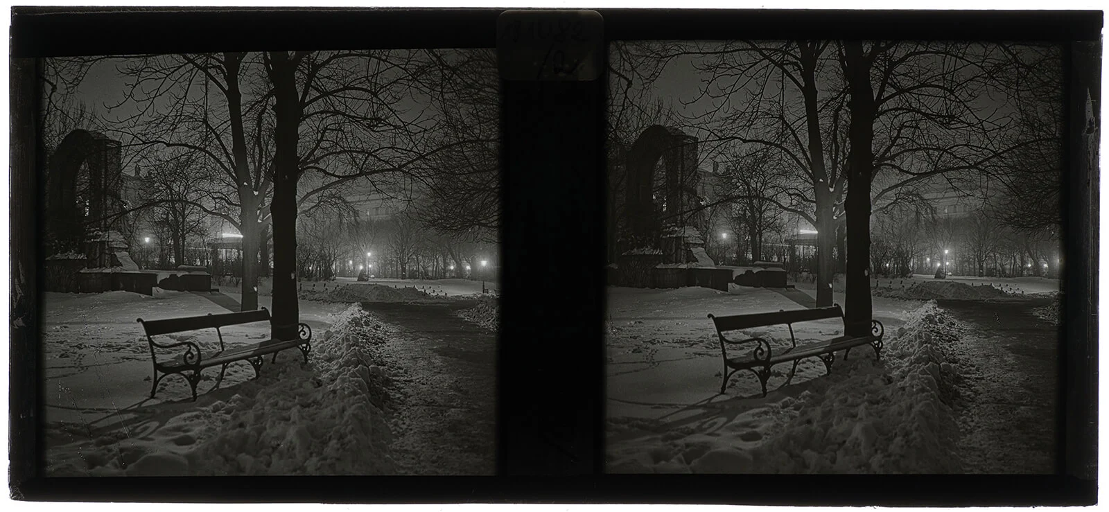 Karl Pollak, Donaukanal im Schnee, Stereopositiv (Glas), 17.02.1931, Pollak-Negativverzeichnis: Nachtaufnahmen 88, Wien Museum, Inv.-Nr. 316539/13