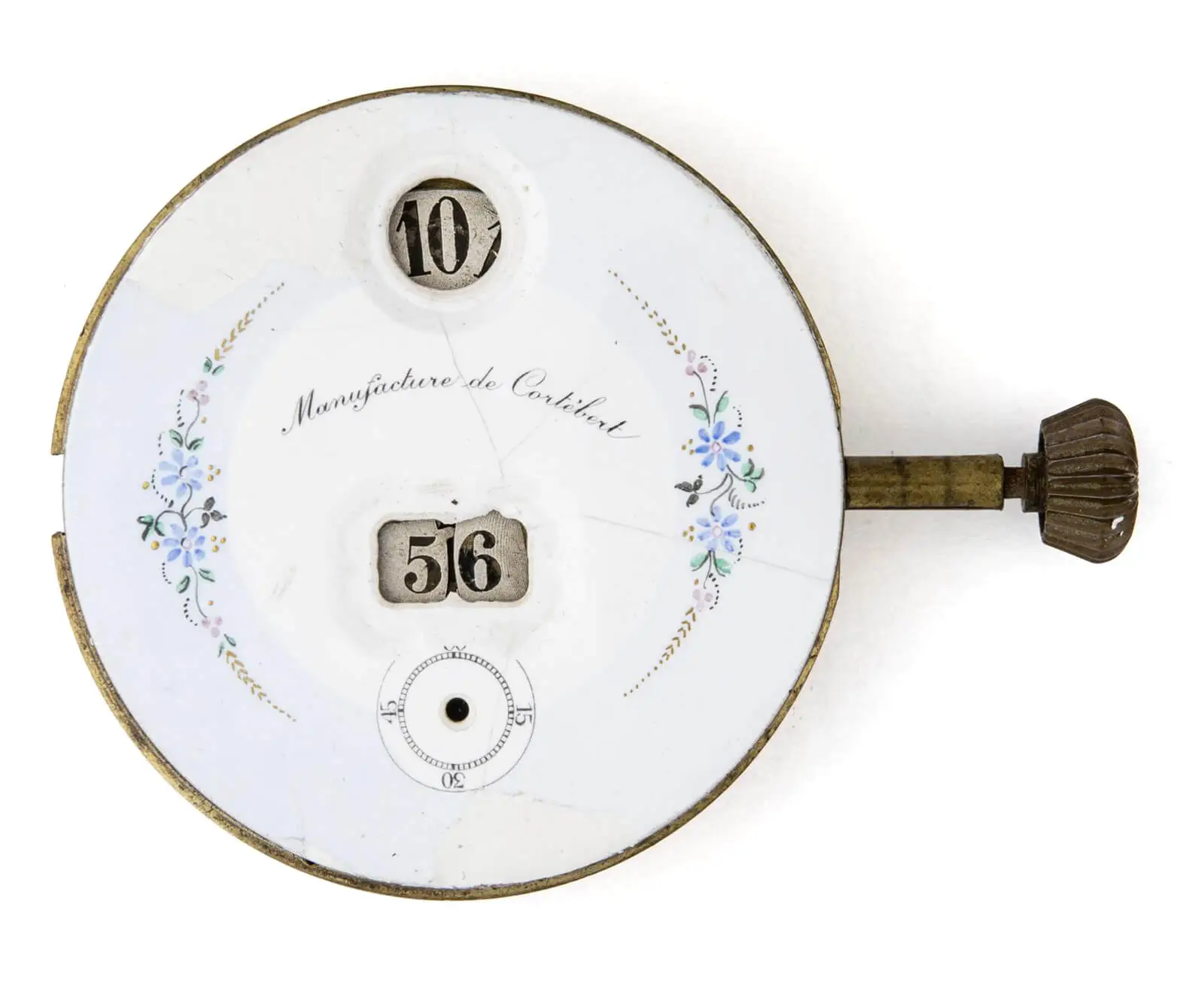 Was uns möglicherweise merkwürdig erscheint, ist, dass die Stunden in römischen Ziffern und die Minuten in arabischen Ziffern ausgeschrieben sind. Auch bei den Taschenuhren mit wandernden Stunden aus dem frühen 18. Jahrhundert war das der Fall. Schaut man sich außerdem „traditionelle“ Zifferblätter aus dieser Zeit an, erkennt man schnell, dass diese auch gemischte Zifferfamilien aufweisen. Auch das Ausschreiben der römischen Ziffer IV als IIII ist ein Relikt aus der Vergangenheit und erinnert daran, dass die Abbildungstradition ein gewachsenes Konstrukt ist, beeinflusst durch astrologische Praktiken, mnemonisches Material, Almanache und Volvellen. Zifferblätter waren eine mechanisierte Version dieser schriftlichen Quellen.