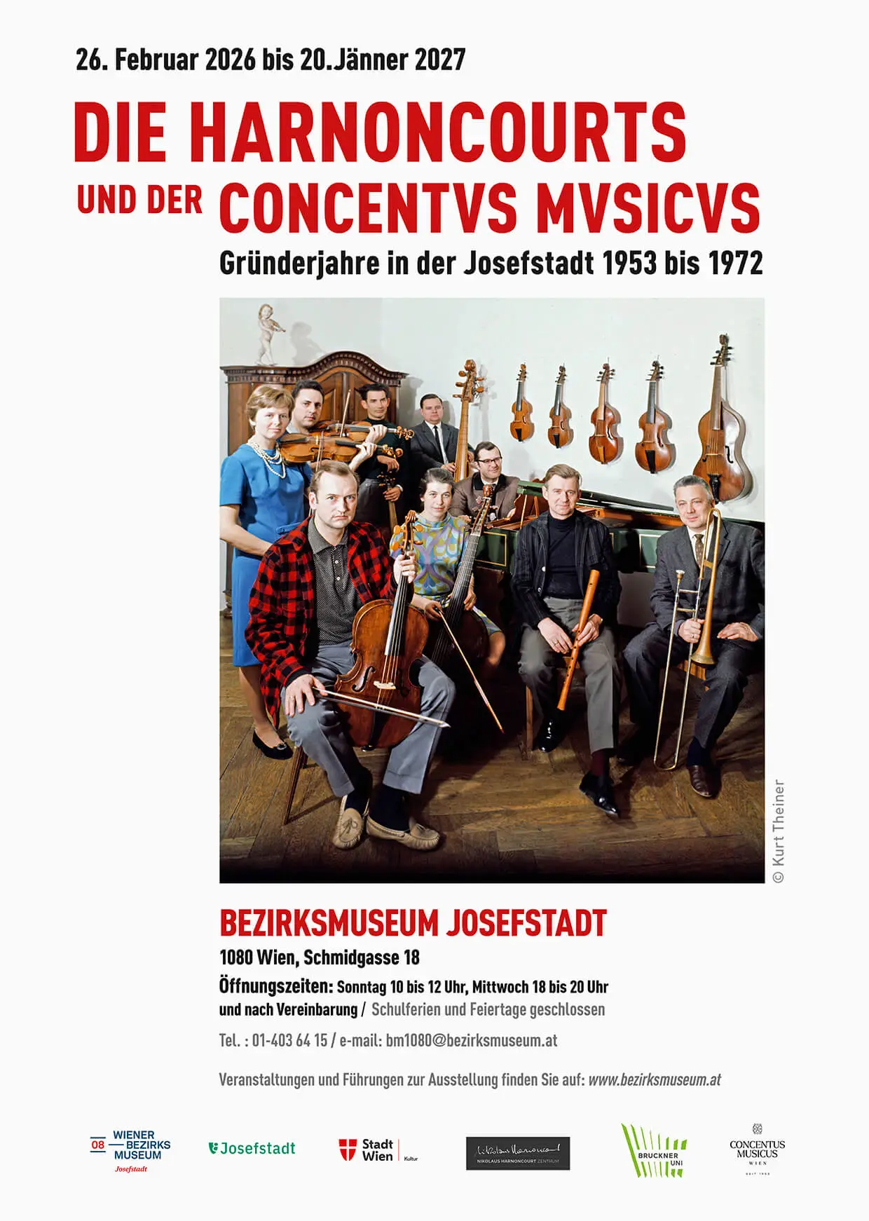 Die Ausstellung DIE HARNONCOURTS UND DER CONCENTUS MVSICVS ist bis 20. Jänner 2027 im Bezirksmuseum Josefstadt zu sehen und entstand in Kooperation mit dem Nikolaus Harnoncourt Zentrum an der Anton Bruckner Privatuniversität Linz sowie Familienmitgliedern der Harnoncourts. Eine Veranstaltungsreihe ergänzt die Ausstellung während der gesamten Laufzeit.