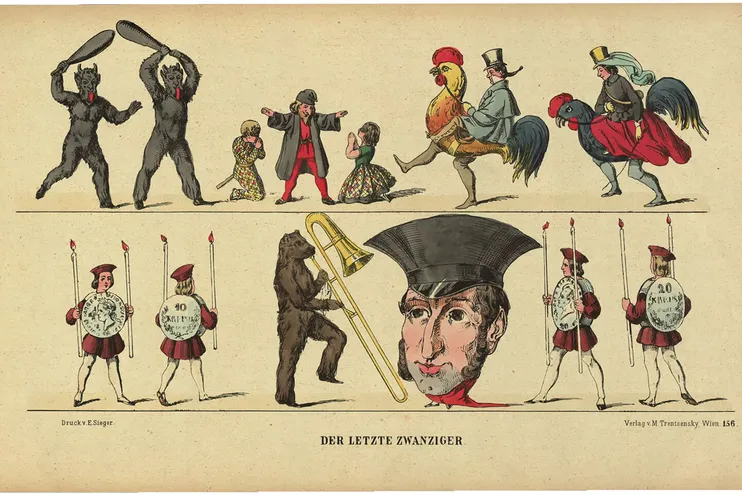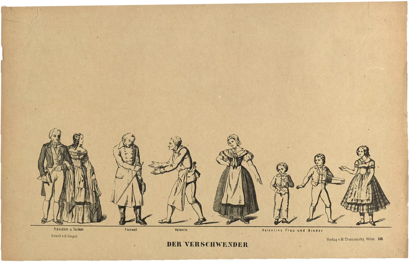 Mandlbogen zum Stück „Der letzte Zwanziger“ von Josef Nikola, um 1850, Wien Museum