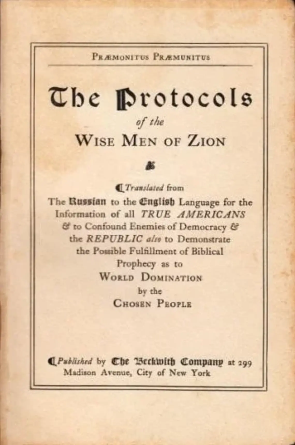 Erstmals veröffentlicht wurden die Protokolle im Sommer 1903 in einer obskuren rechtsextremen Petersburger Zeitung. Weitere Ausgaben erschienen im Revolutionsjahr 1905 und in den folgenden Jahren in Moskau, Petersburg und in der russischen Provinz, wobei nicht nur die Zahl der „Protokolle“ und ihr Inhalt, sondern auch die Angaben zu Alter und Herkunft erheblich divergierten. Im vorrevolutionären Russland fand die Schrift indes nur schwache Resonanz – zumal sie auch keines der traditionellen christlich-antijudaistischen Stereotype bedient –, und es gibt keine Hinweise, dass sie unmittelbar zur Anstachelung antisemitischer Gewalt benutzt wurde. Oft zitierte Berichte über die Verlesung der Protokolle in allen Moskauer Kirchen oder über kritische Äußerungen des Zaren zu dieser Schrift gehören ins Reich der Legenden. 5