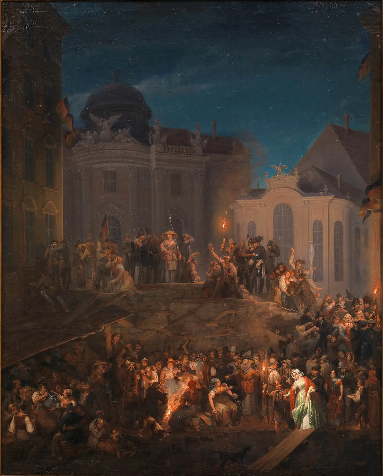 Bildausschnitt aus: Anton Ziegler: Die Barrikade auf dem Michaelerplatz in der Nacht vom 26. auf den 27. Mai 1848, Öl auf Leinwand, Wien Museum