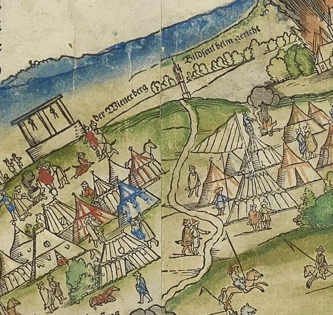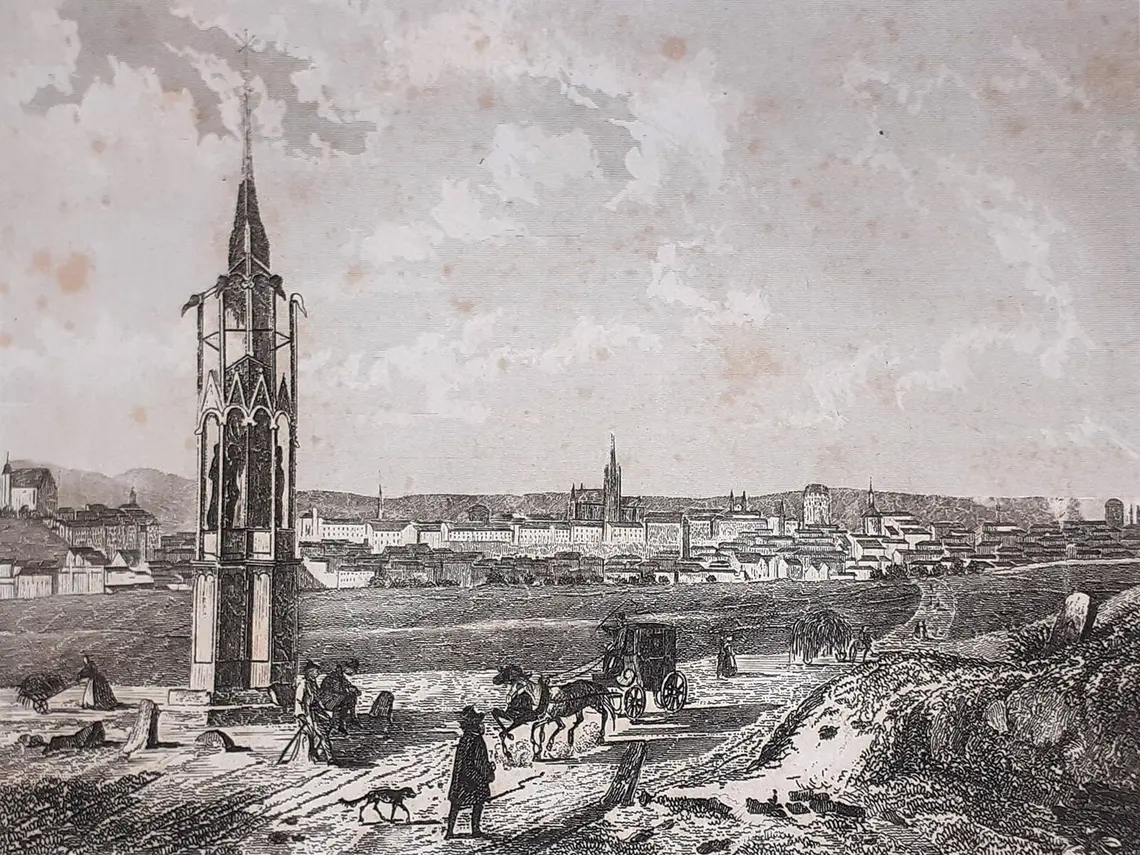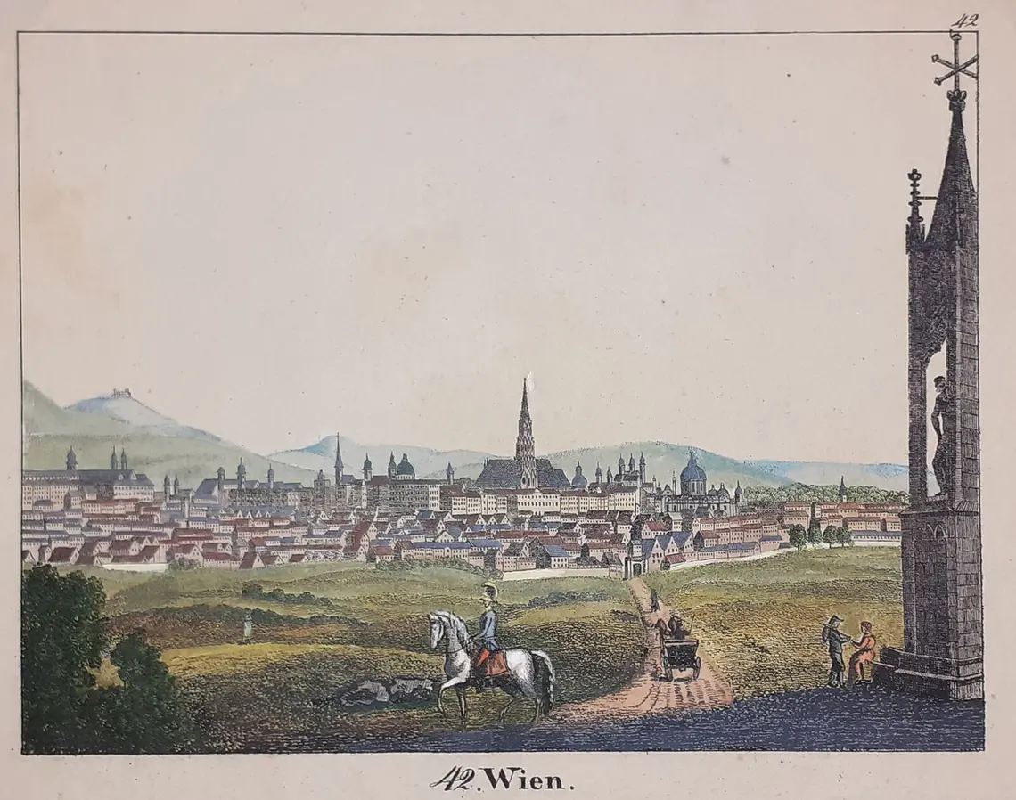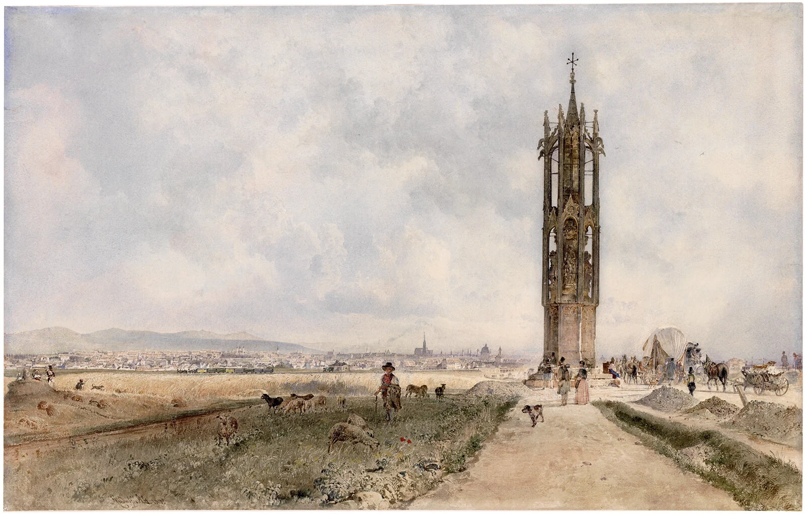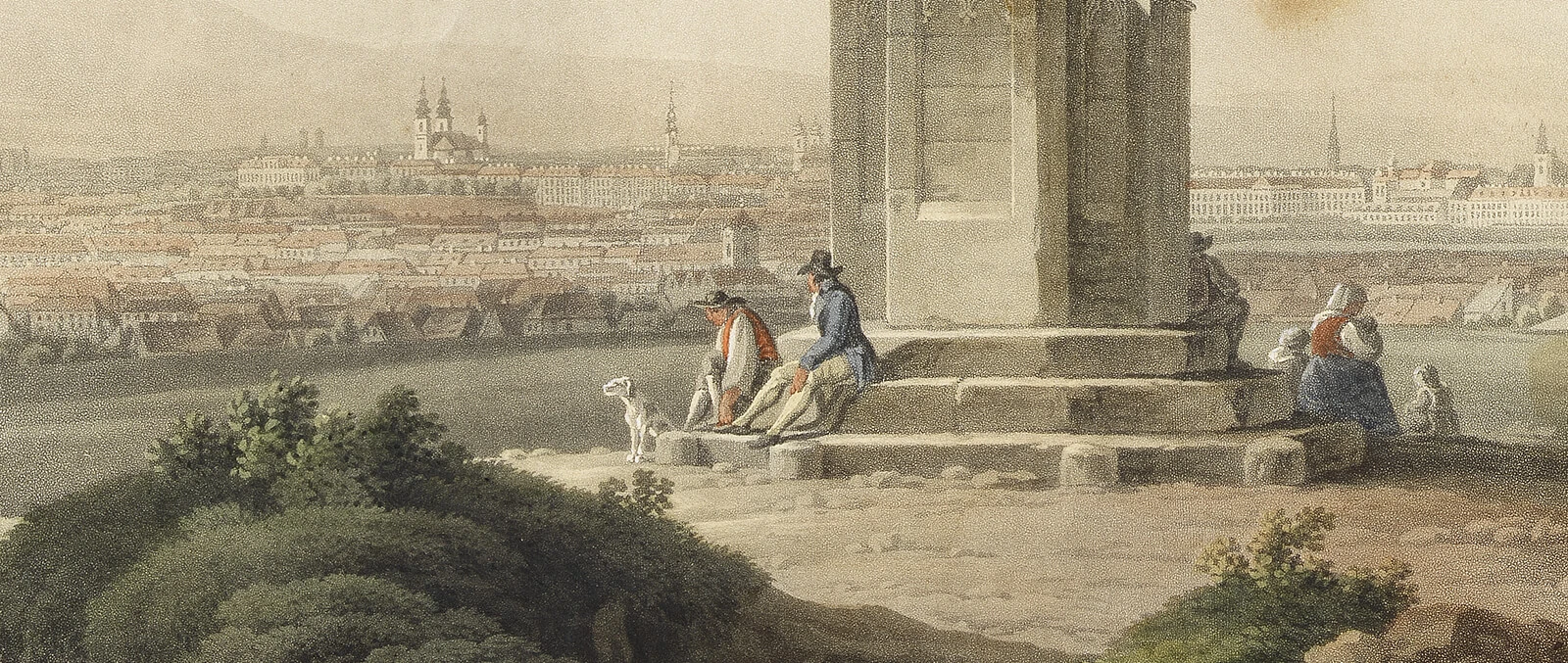 Balthasar Wigand, Ansicht der Stadt Wien mit der Spinnerin am Kreuz (Ausschnitt), Gouache, um 1824–1830, Wien Museum