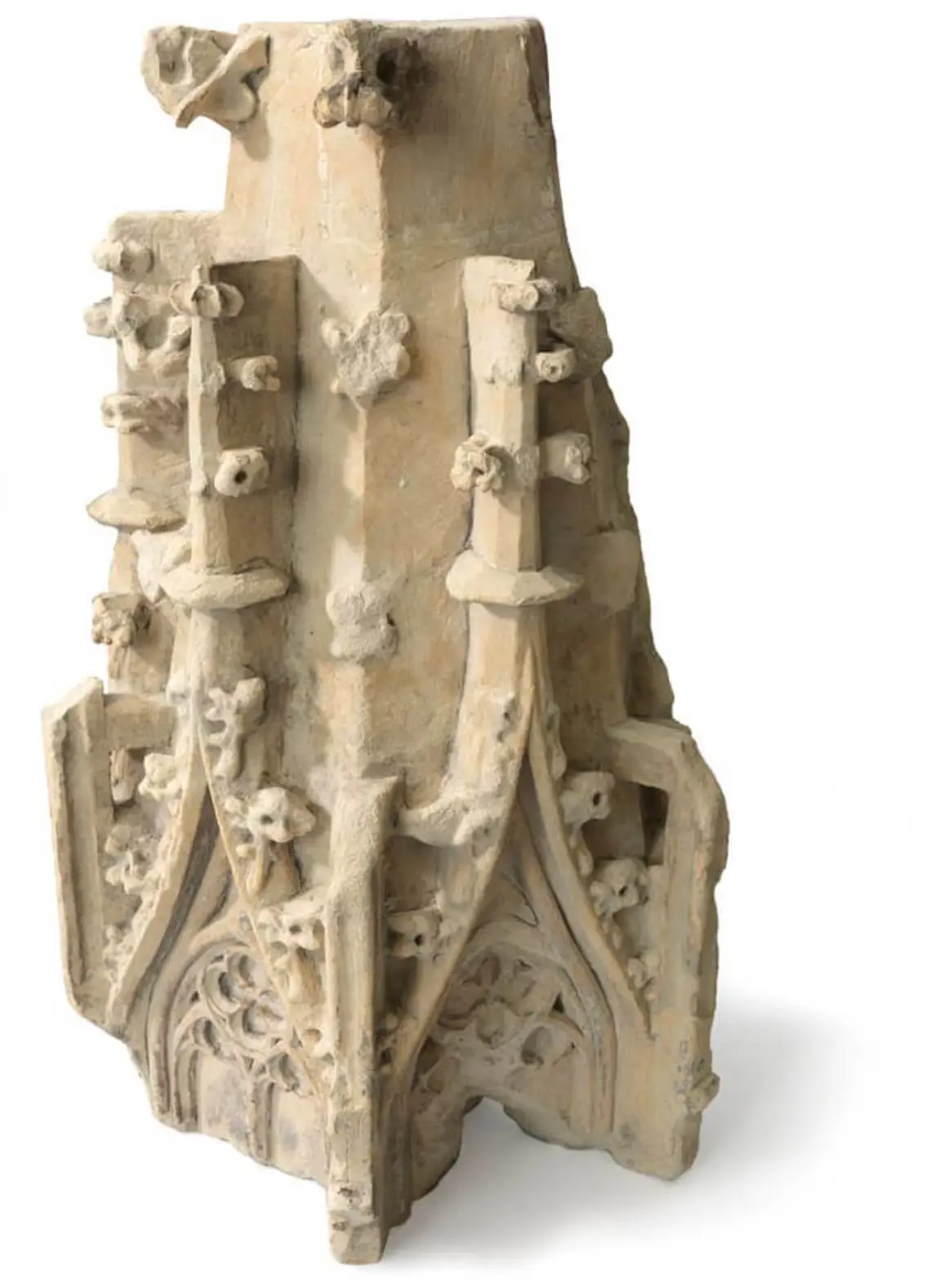 Im Zuge der Renovierung von 1852 wurde auch die früheste genaue Bauaufnahme des 16 Meter hohen, aus Leithakalkstein errichteten Denkmals angefertigt. Diese Zeichnung veranschaulicht den architektonischen Aufbau der Säule, der mit französischen und englischen Gedächtnismalen verwandt ist, die anlässlich der Leichenbegängnisse für Angehörige der Königshäuser errichtet worden sind (englische „Eleanor-Crosses“, französische „montjoies“): Über einem achtseitigen Stufenpodest erhebt sich ein Sockel über kreuzförmigem Grundriss sowie ein darüber liegender Tabernakel mit quadratischem Kern und 4 Figurengruppen aus der Passion Christi, die in ein umfassendes Strebewerk integriert sind (Dornenkrönung, Ecce homo, Geißelung Christi, Kreuzigung). Den oberen Abschluss bilden eine Bekrönung mit Wimpergen, Fialen und Wasserspeiern, sowie ein pyramidenförmiger Steinhelm mit Krabbenbesatz und Kreuzblume.