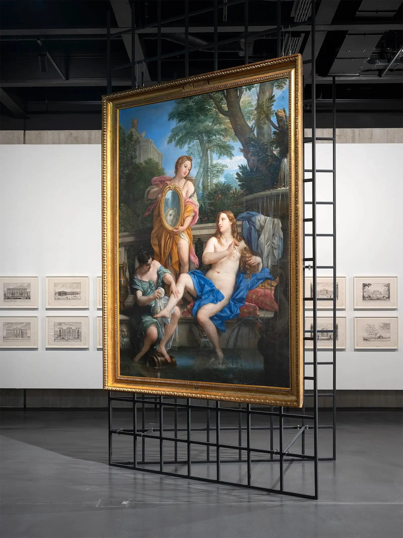 Damit begann die Geschichte des Bildes in den Depots der städtischen Sammlungen. Wohl wurden die Bestände aus Pötzleinsdorf noch 1935 in situ katalogisiert und in Listen erfasst – allerdings auch nach Beilegung des Rechtsstreits zu einem großen Teil nicht inventarisiert. Wohl deshalb, weil die Sammlung internationaler Kunst mehrheitlich einfach nicht in das Sammlungsprofil des Wiener Stadtmuseums passte. Weil „auch wertvollere Gegenstände nicht das Geringste mit der Stadt Wien und ihrer Geschichte zu tun haben“ erwirkte die Direktion 1951 sogar einen Gemeinderatsbeschluss, der „Verkauf, Tausch, Abgabe oder Skartierung“ von Teilen der Sammlung erlaubte. Bathseba blieb im Depot, erhielt aber selbst als der zuständige Kurator 1964 seine Provenienz recherchierte, keine Inventarnummer. Ab 1974 befand sich das Gemälde im Museumsdepot in der Koberweingasse neben anderen völlig unzugänglich gelagerten, großformatigen Gemälden und geriet wieder in Vergessenheit. Erst die Übersiedlung ins neue Depot Himberg ermöglichte den sensationellen Fund. Der vorläufig letzte Akt in der wechselvollen Geschichte von Marattas Bathseba im Bade erfolgte durch eine 2023 erfolgte sorgfältige Restaurierung und die anschließende Präsentation des Gemäldes als Highlight in der aktuellen Ausstellung „Fischer von Erlach. Entwurf einer historischen Architektur“, die dem Kunstwerk endlich die verdiente und lange verwehrte öffentliche Aufmerksamkeit wiedergibt.