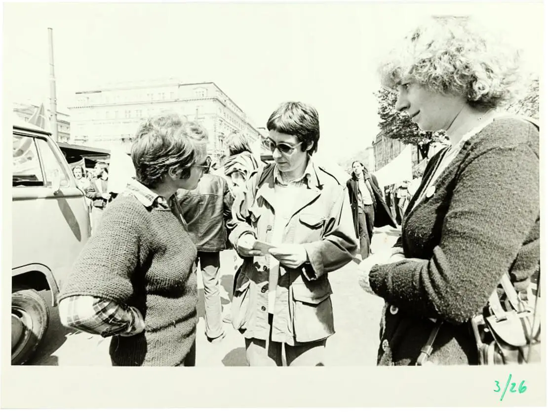 Erica Fischer (Bildmitte) bei einer gemeinsamen Demonstration linker Gruppen auf der Ringstraße, 1. Mai 1976. Foto: Peter Hirsch, Burgi Hirsch, Wien Museum, Inv.-Nr. 300244/117