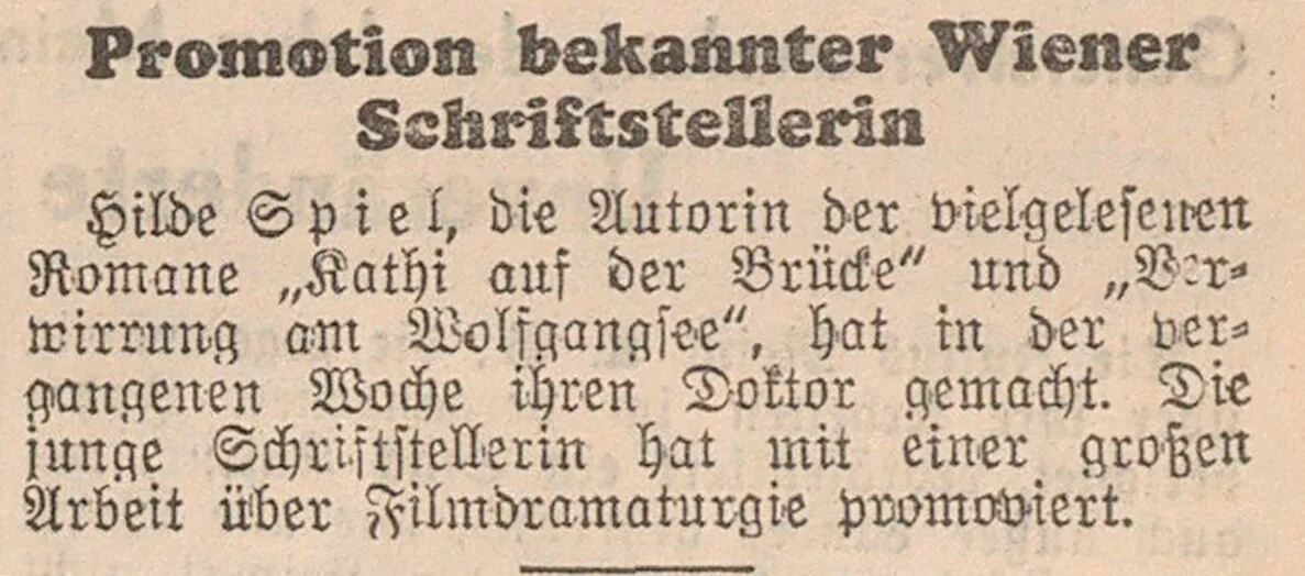 1929 hatte Spiel an der Universität Wien ihr Philosophie-Studium begonnen (das sie 1936 mit der Promotion abschloss und zu dessen Finanzierung sie von 1933 bis 1935 in der Wirtschaftspsychologischen Forschungsstelle von Paul Lazarsfeld arbeitete, wo sie mit dem Sozialismus in Kontakt kam. 1934 lernte sie in einem Kaffeehaus den deutschen Schriftsteller und Historiker Peter de Mendelssohn kennen, der 1933 vor den Nazis nach Wien geflohen war, allerdings zu dieser Zeit schon in Paris lebte und nur zu Besuch in der Stadt war. Zwei Jahre später erklärte er dann einem befreundeten Ehepaar, er fahre nach Wien, um ein Mädchen namens Hilde Spiel zu heiraten („Die hellen und die finsteren Zeiten“, S. 110). Im Oktober 1936 heirateten Hilde Spiel und Peter de Mendelssohn in England und standen am Anfang eines neuen Lebens.