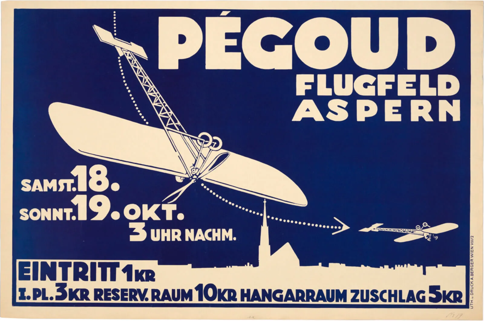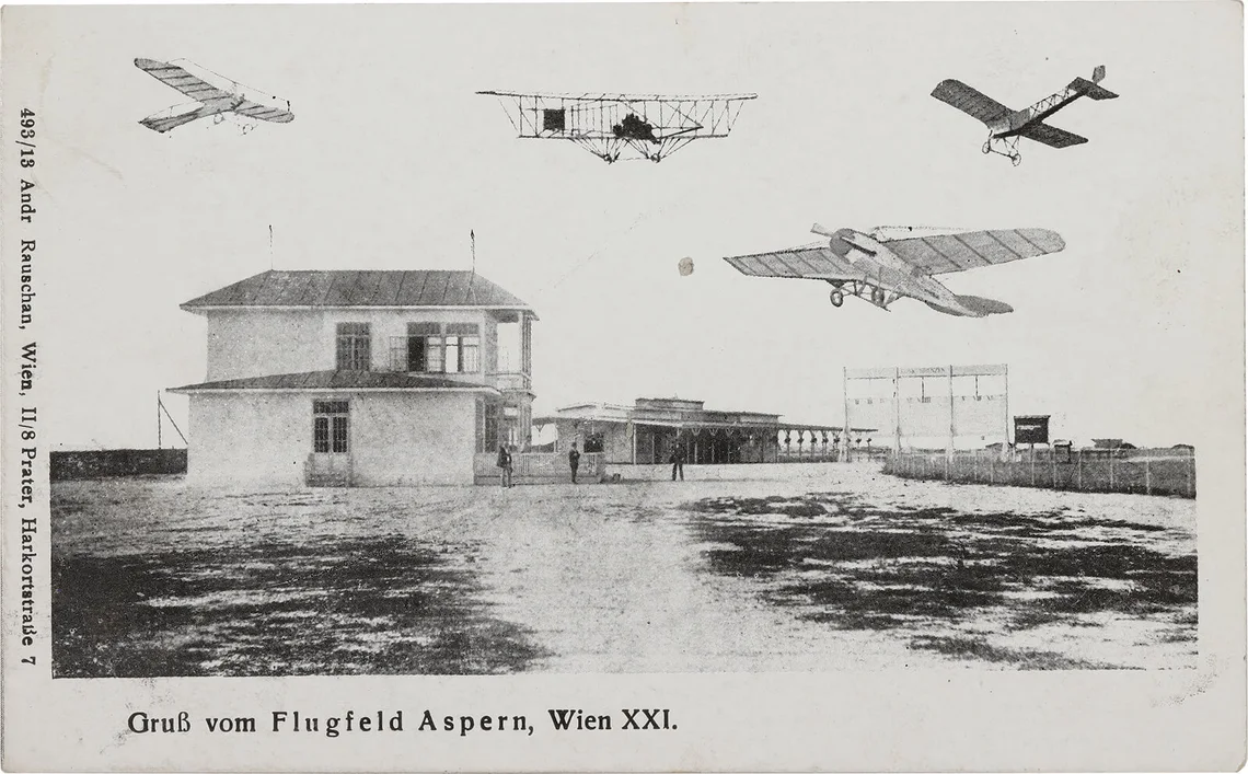 Aspern ist ein geschichtsträchtiger Boden. 1809 besiegten hier die österreichischen Streitkräfte unter Erzherzog Karl die französischen Truppen Napoleon Bonapartes. 1927 wurden bei archäologischen Grabungen Keramiken der linearbandkeramischen Kultur (etwa 5.000 v. Chr.) gefunden, die davon zeugen, dass Aspern zu den ältesten Siedlungsgebieten Wiens zählte. Seit 2007 wird hier im Bezirk Donaustadt mit der Seestadt Aspern eines der größten Stadtentwicklungsprojekte Europas realisiert. Und zwischen diesen doch sehr unterschiedlichen Zeithorizonten wurde von 1912 bis 1977 auf dem Flugfeld Aspern in luftigen Höhen Geschichte geschrieben.