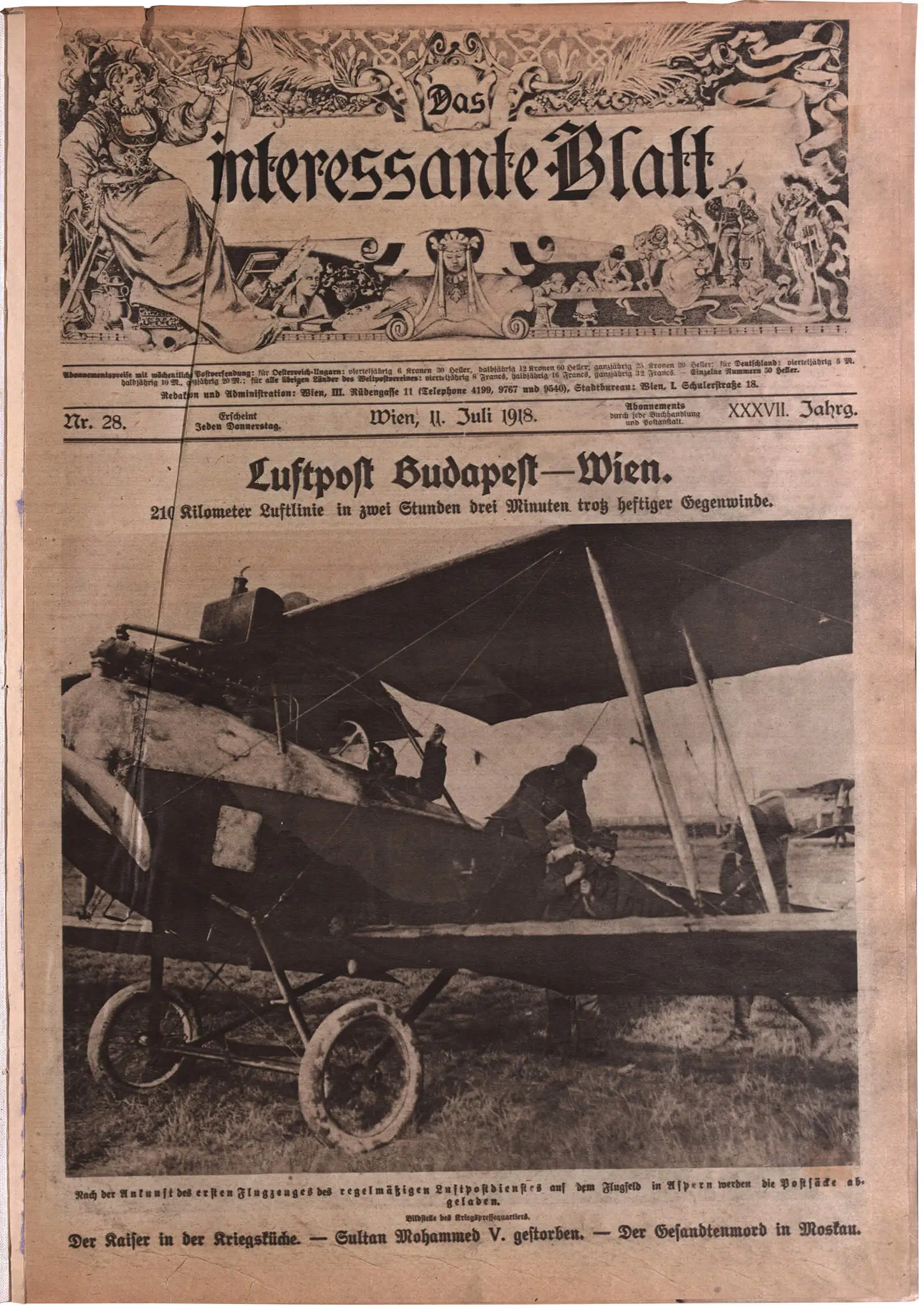 Im letzten Kriegsjahr wurde am Flugfeld Aspern allerdings erneut Geschichte geschrieben. Am 20. März 1918 startete das erste Postflugzeug von Aspern und war auf der Route über Krakau, Lemberg nach Proskurow und Kiew unterwegs. Ob die Luftpost Zukunft hätte, war zu diesem Zeitpunkt noch nicht abzusehen. Bald darauf wurde der Luftpostverkehr auf dieser 1.200 Kilometer langen Strecke zur täglichen Routine. Realisiert wurde der Luftpostverkehr von den Fliegerverbänden des Heeres. 22 Flugzeuge, 14 Unteroffizierspiloten und 16 Beobachtungsoffiziere waren in der Folgezeit für diese Linie im Einsatz. Ab 20. Mai beförderte die Post auch Telegramme zwischen Wien, Galizien und der Bukowina, zum Einsatz kamen hauptsächlich Hansa-Brandenburg-C1-Maschinen aus verschiedenen österreichisch-ungarischen Produktionsstätten.