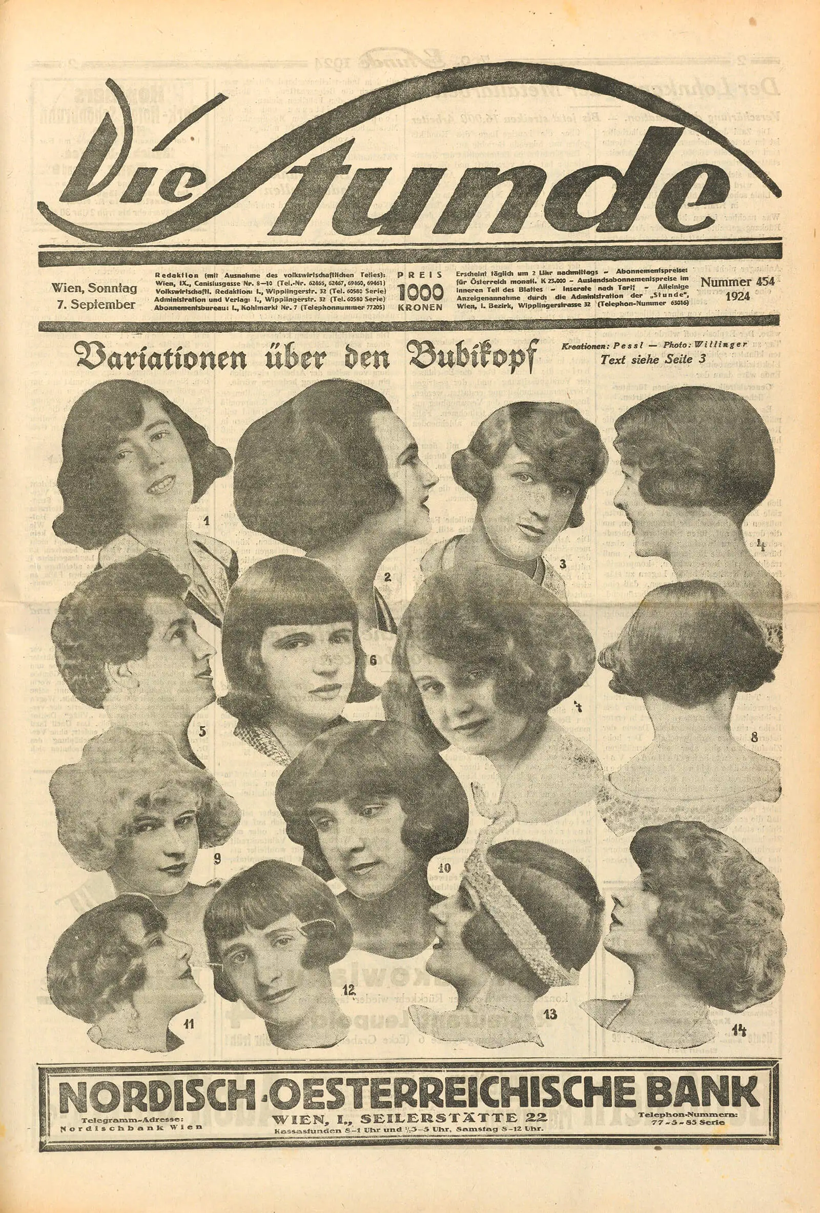 Für und gegen den Bubikopf. Eine wichtige Debatte, in: Die Stunde, 7.9.1924, S. 3-4.