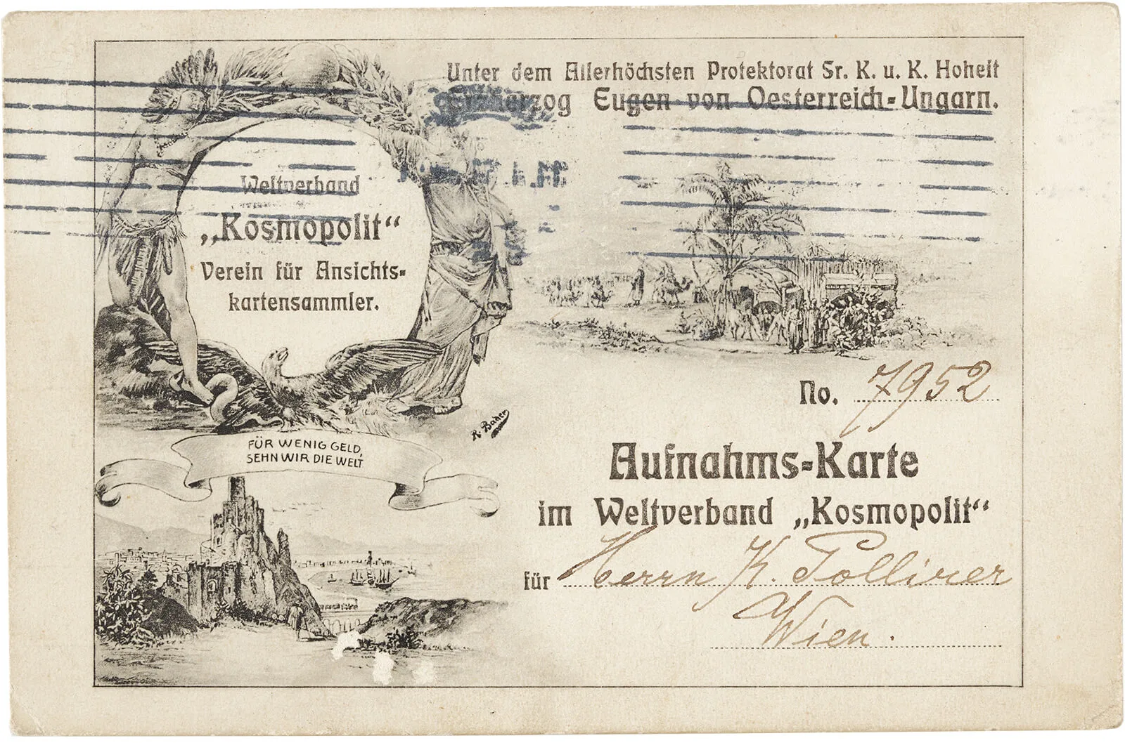 Ansichtskarte des „Weltverbands Kosmopolit“ in Nürnberg, 1908, Sammlung Lukan, Wien