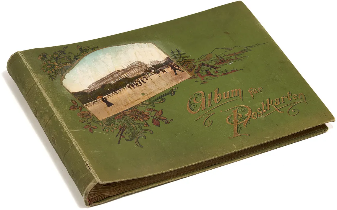 Das Sammeln von Ansichtskarten transferierte solche Erfahrungen in den privaten Raum. So bot das Anlegen eines Postkartenalbums die Möglichkeit, spielerisch Erfahrungen von Raum und Räumlichkeit zu erproben. Die Albenstruktur – zwei bis vier, manchmal sogar bis zu sechs Karten pro Seite – erlaubte, Ansichten in einem flächigen Neben- und Nacheinander zu sehen und sie auf bestimmte Weise zu strukturieren. Dabei wurden die Objekte nicht eingeklebt, sondern in vorgestanzte Schlitze eingefädelt, wodurch sie mobil und offen für immer neue Ordnungen blieben. Zum Erfolg solcher Praktiken trug bei, dass Konsumkultur und populärwissenschaftliche Ambitionen dabei eine enge Verbindung eingingen. Immer neue Alben und andere Sammelbehelfe wurden marktgängig, die Titel wie „Postkartengrüße aus Nah und Fern“ oder „Welt-Ordner für illustrierte Postkarten“ trugen und den Erwerb geografischen Wissens versprachen. Die mitunter schmuckvolle Ausgestaltung der Alben hatte dabei auch eine Repräsentationsfunktion – lagen diese doch oft im Wohnraum auf, um gemeinsam mit Besuchenden betrachtet zu werden.