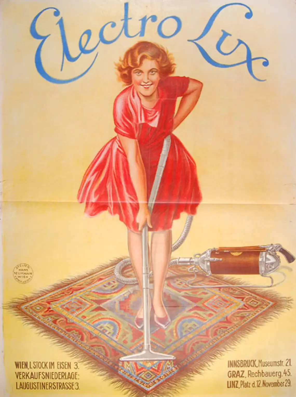 In der Zwischenkriegszeit existierte bereits ein umfangreiches Angebot an Staubsaugern. Große und bekannte Firmen wie Siemens und AEG brachten Modelle auf den Markt, aber auch kleine und eher lokal agierende Hersteller wie etwa die Wiener Firma Dörfler. Obwohl Staubsauger sehr begehrt und im Unterschied zu Waschmaschine oder Kühlschrank schon vergleichsweise weit verbreitet waren, stellten sie noch keinen selbstverständlichen Bestandteil des Hausrats dar. Für den Durchschnittshaushalt war der finanzielle Aufwand trotz Teilzahlungsmöglichkeiten zu groß, verbreitet waren sie vor allem in besser situierten Haushalten. Das hatte nicht nur mit den Kosten zu tun, sondern auch mit der Tatsache, dass nach dem Ersten Weltkrieg die Zahl der häuslichen Dienstboten stark zurückgegangen war und nun auch viele bürgerliche Frauen im Haushalt selbst Hand anlegen mussten, quasi ihr eigenes „Mädchen für alles“ geworden waren. Für sie diente der Staubsauger explizit als Dienstmädchenersatz, da er eine schmutzige Arbeit sauber und ohne Status- und Schönheitsverlust zu erledigen half. In der zeitgenössischen Staubsaugerwerbung sieht man daher häufig elegant gekleidete Damen, die es mit diesem technischen Gerät nicht notwendig haben, mit Schürze und Kopftuch im Dreck herumzukriechen oder in einer durch den Teppichklopfer verursachten Staubwolke zu verschwinden. Der Staubsauger war also nicht nur ein Haushaltsgerät, sondern auch ein Hausfrauengerät geworden.