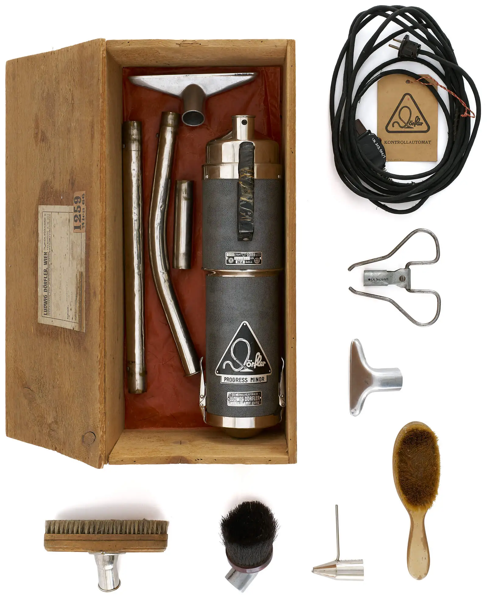 Und wie wurde aus diesen großen mobilen oder stationären Staubsaugapparaturen das vergleichsweise kleine, handliche und jederzeit einsatzbereite Haushaltsgerät, wie wir es heute kennen? Wesentliche Voraussetzungen dafür waren Elektrokleinmotoren und flächendeckende Elektrifizierung ebenso wie die preissenkende Massenproduktion. Erst als der Staubsauger schrittweise kleiner und leichter wurde, konnte er mühelos von einer einzelnen Person betätigt werden und auch in kleineren Wohnungen Platz finden. Solche Modelle kamen vereinzelt bereits vor dem Ersten Weltkrieg auf den Markt, zu einer besseren technischen Reife gelangten sie dann in der Zwischenkriegszeit. Während die Vacuum Cleaner von und nach Booth und Kenney zunächst mit Benzinmotoren oder Dampfmaschinen betrieben wurden, setzte sich später der Elektromotor durch. Bedingung für den Betrieb solcher Staubsauger war also die Elektrifizierung der Haushalte – ein Prozess, der sich in Österreich teilweise bis in die Mitte des 20. Jahrhunderts hinein erstreckte. Über eine elektrische Lichtleitung verfügten aber bereits in der Zwischenkriegszeit sehr viele Haushalte, und an diese konnte der Staubsauger – ganz im Unterschied zu den damaligen Herden oder Waschmaschinen, die eine Starkstromleitung benötigten – problemlos angeschlossen werden. Wie das Bügeleisen zählte der Staubsauger daher zu den Pionieren unter den elektrischen Haushaltsgeräten.