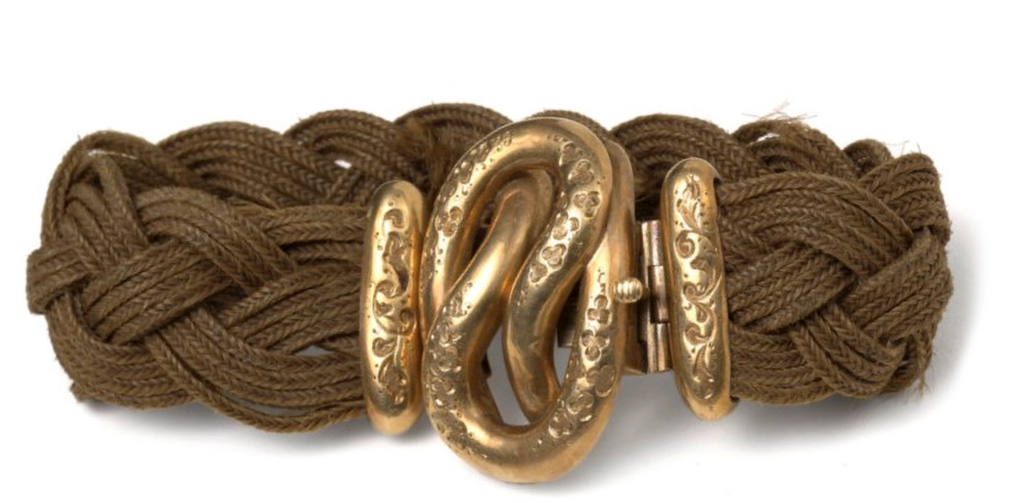Und so wie wir heute die Locke eines Neugeborenen in ein Erinnerungsalbum einkleben, schnitt man vor allem im Lauf des 19. Jahrhunderts verstorbenen Familienmitgliedern die Haare ab, um daraus Gedenkschmuck herzustellen. Die Stücke wurden in der Trauerzeit getragen, also ein Jahr lang nach dem Tod des Familienmitglieds. Der viktorianische Trauerkult brachte diese Gebilde so sehr in Mode, dass viele ihre Haararmbänder oder Haarbroschen jahrelang trugen, manchmal das ganze Leben. Haare stehen als pars pro toto für den gesamten Menschen. Trägt man ein Armband aus den Haaren des Toten, so begleitet dieser den Lebenden – im guten Sinn – weiterhin und wacht wie ein Schutzengel über dessen Wohlergehen.