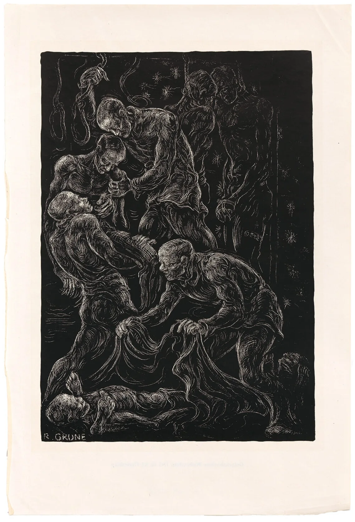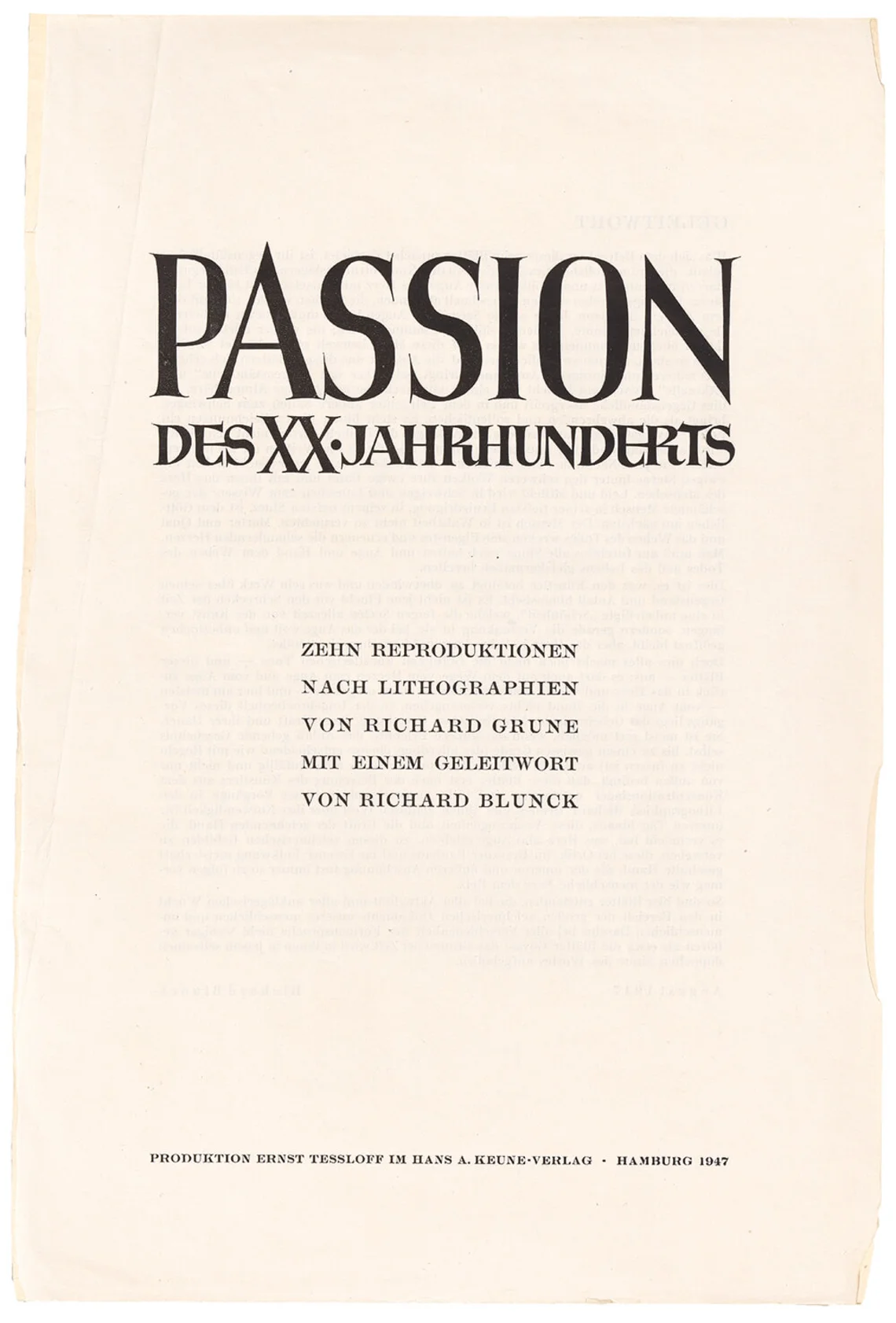 Richard Grune: „Passion des XX. Jahrhunderts“, 10 Reproduktionen nach Lithographien von Richard Grune mit einem Geleitwort von Richard Blunck, Produktion Ernst Tessloff im Hans A. Krune-Verlag, Hamburg 1947, Schenkung Tobias G. Natter/ Sammlung Wien Museum