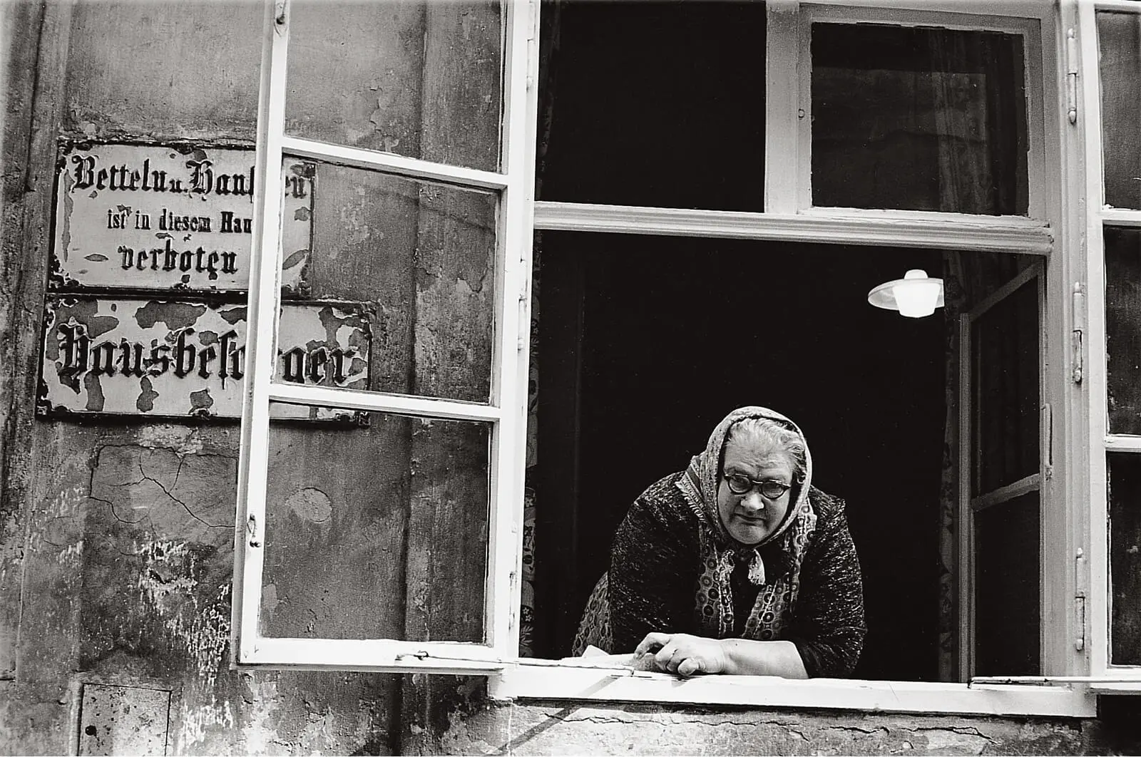 Links: Hausbesorgerin am Fenster, Wien-Erdberg, 1950, Foto: Franz Hubmann/Imagno/picturedesk.com, Rechts: Ilse Helbich, Foto: Privat