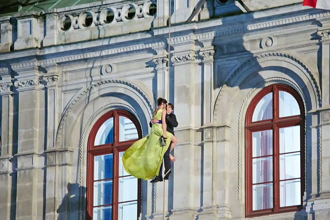Richtige Action gab es im Jahr 2014 bei Dreharbeiten für „Mission: Impossible - Rogue Nation” rund um die Wiener Staatsoper. Ein Attentat auf den österreichischen Bundeskanzler während einer Turandot-Aufführung in der Staatsoper muss verhindert werden. Tom Cruise ist als Ethan Hunt zur Stelle. Es kommt zu Verfolgungsjagden durch das gesamte Operngebäude und auf dessen Dach. Mit der von Rebecca Ferguson gespielten Agentin Ilsa Faust seilt sich Hunt schließlich vom Wiener Opernhaus ab. Die Weltpremiere des Films fand 2015 auch tatsächlich in der Wiener Staatsoper statt.