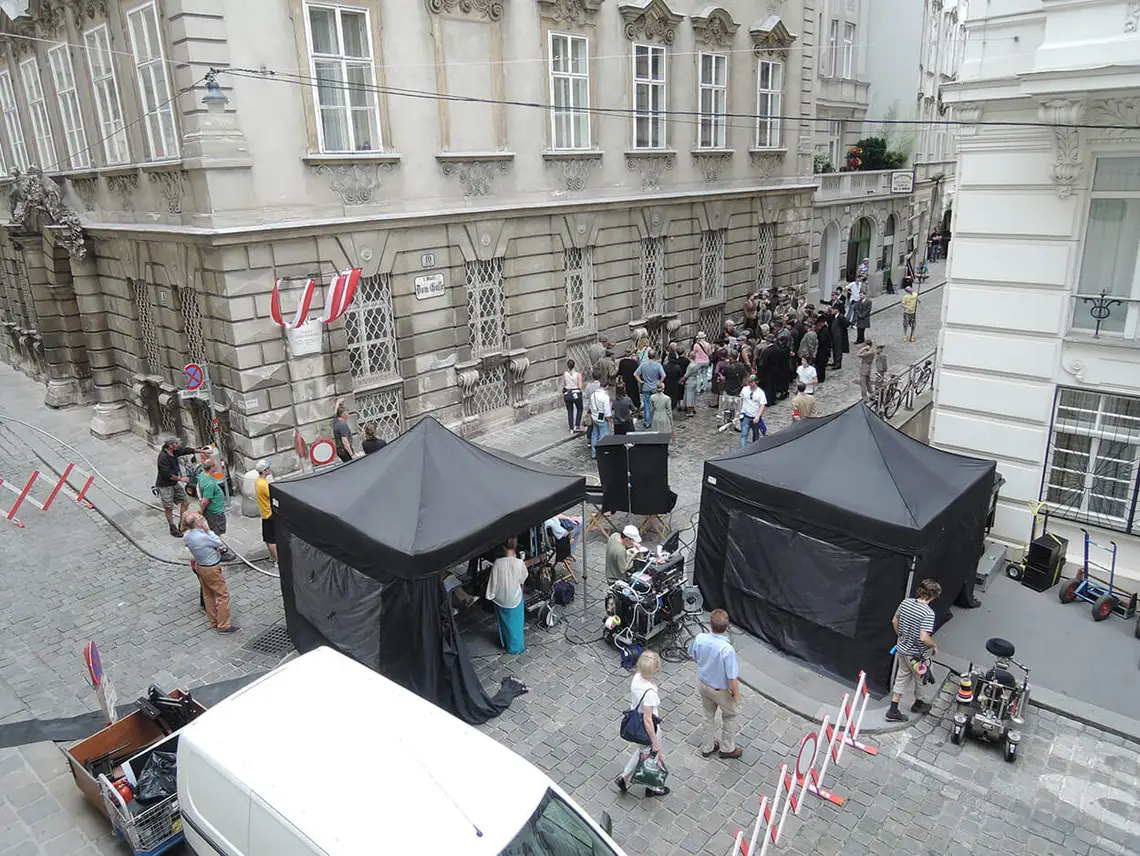 Das Rathaus in der NS-Zeit in „Die Frau in Gold”, Dreharbeiten in der Felderstraße, der Domgasse und dem St.-Ulrichs-Platz, 2014, Vienna Film Commission