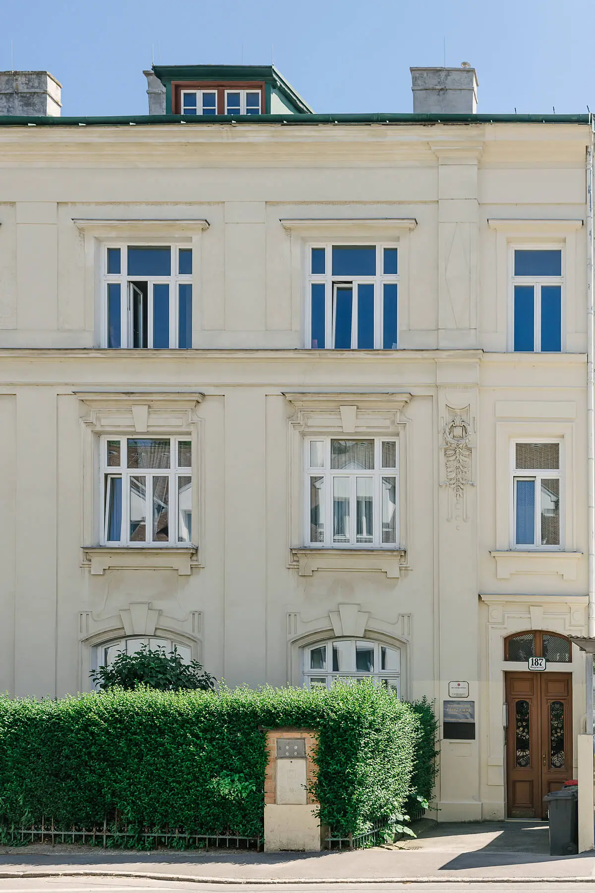 Womit wir auch schon beim ersten Grund sind, den Studien- und Gedenkraum zu besuchen: die Atmosphäre des Hauses. Man betritt diese Zeitkapsel wie Kafka vor hundert Jahren: Fassade, Stiegenhaus, Böden und Wände sind nicht modernisiert worden.