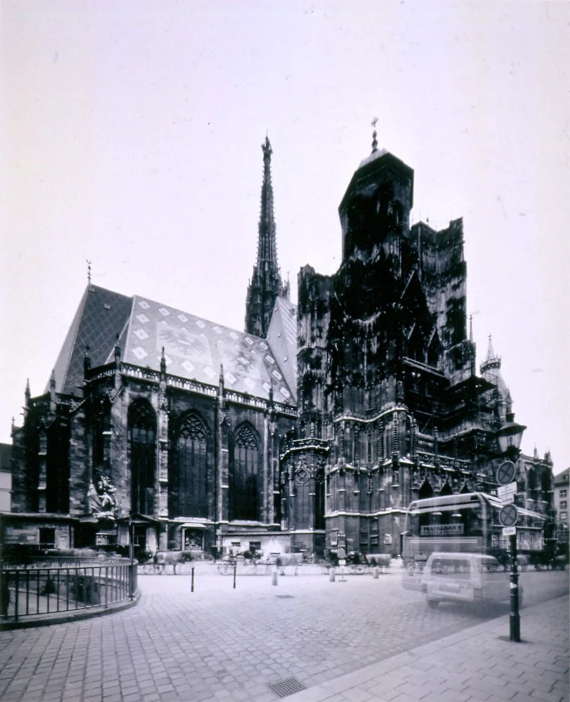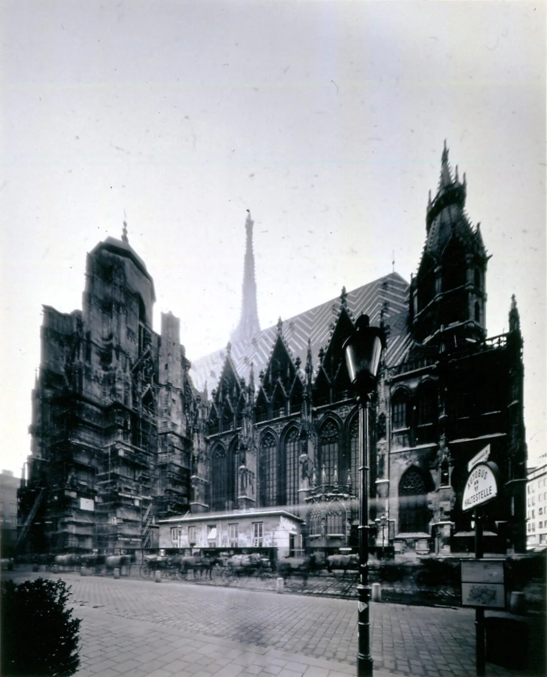 Auch in Thomas Freilers Zyklus „Stephansdom, Wien“ von 1995 erhält das Motiv eine fast unwirkliche Präsenz, indem er mit einer selbst gebauten Camera obscura den Dom umrundete und die Einstellungen lange belichtete. Auf diese Weise erzielte er magische Bilder, die das menschliche Auge uns so nicht sehen lässt.