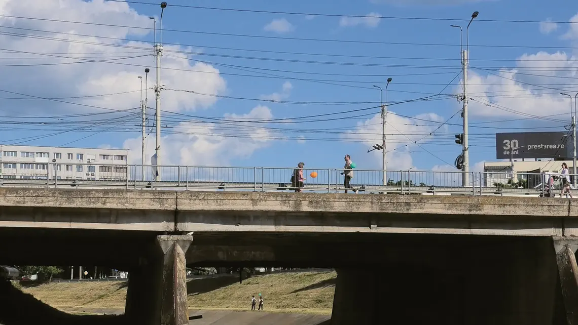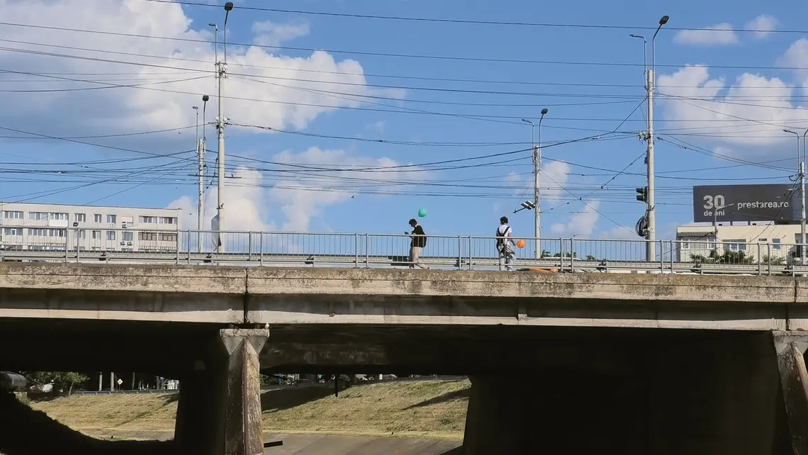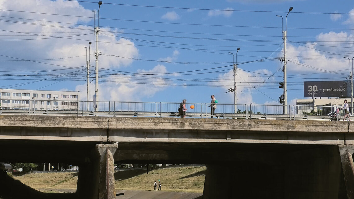 Oder auch spalten. Zum Beispiel die Arbeit, die ich letztes Jahr in Iași in Rumänien realisiert habe. Am einen Ende der Brücke wurden an Passant:innen orangefarbene Ballons verteilt („Balloon Crossing“, 2024) und am anderen türkise. Ich habe dann gefilmt, wie sich die Leute auf der Brücke „begegnen“. Alles wirkt sehr ruhig, es gibt kein Konfliktpotenzial. Aber manchmal, wenn man genau schaut, merkt man, dass jemand verunsichert ist: Wieso habe ich jetzt eigentlich einen Ballon in dieser Farbe und nicht in der anderen, und was bedeutet das? Ich war vorher skeptisch, ob die Leute die Ballons annehmen würden, weil ich selbst das eher nicht machen würde. Tudor Pătrașcu, mit dem ich dort ausgestellt habe und der mich eingeladen hatte, meinte nur: Die Leute sind so gewöhnt an Wahlkampfgeschenke und Manipulationsversuche, das ist denen egal. Und noch weniger relevant ist natürlich die Farbe der Ballons. Ich habe bewusst Farben genommen, die momentan in Rumänien keiner großen Partei zugeordnet werden. Dieses trügerische Bild, als gäbe es einen tieferen Grund für diese „Konfrontationen“ auf der Brücke, die aber ins Leere laufen, entsteht nur von außen. Am nächsten Tag haben wir die Aktion übrigens wiederholt, diesmal kamen aber die orangefarbenen Ballons von rechts und die türkisen von links.