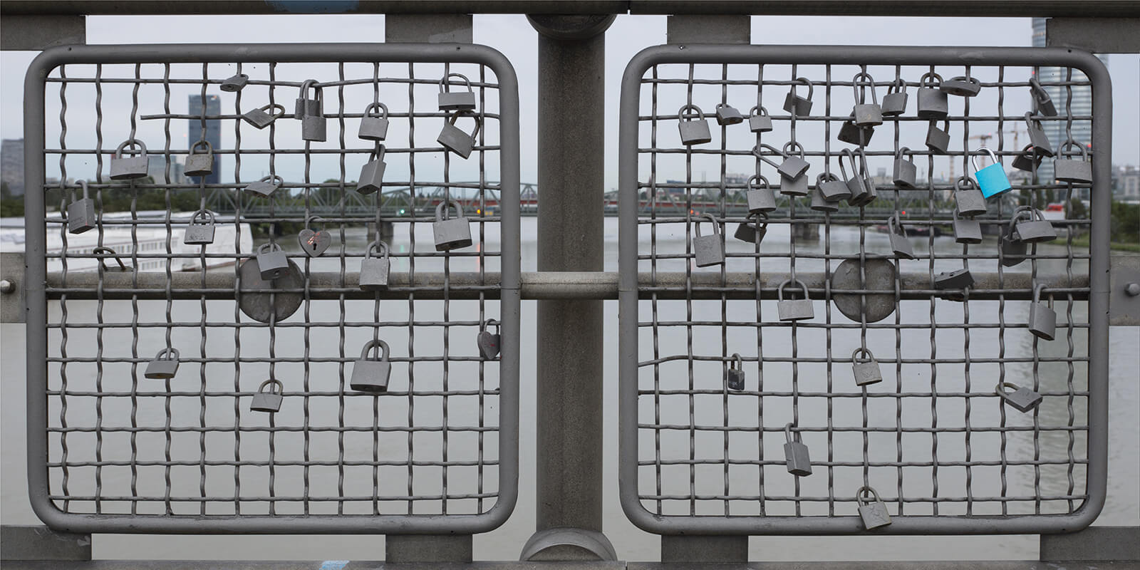 Ich nehme die jungen Teenagerpaare damit auch ernst – sie reproduzieren ja möglicherweise die Gesellschaft. Aber die Gesellschaft verlangt abgesehen von Individualität eben auch Gemeinsinn. Dass die Farbe ausgerechnet Grau ist, habe ich mir nicht ausgesucht – ist aber eh schön. Die Lackschicht ist außerdem ein Schutz, durch den die Schlösser länger halten.