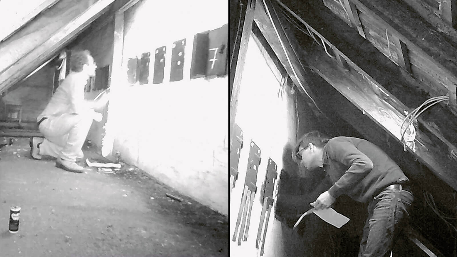 Bei „Fence Sharpening“ wurde das allgegenwärtige Gewaltpotenzial quasi in ein Ornament gegossen. Die Lanzenform an den Streben des Gartenzauns ist normalerweise nicht scharf, aber trotzdem ist die Drohung da. Weil wir daran gewöhnt sind, fällt das normalerweise nicht auf. Mein Eingriff war das demonstrative Anspitzen. Es ist so gefilmt, dass man immer wieder Reaktionen von Passant:innen mitkriegt und sich dann fragt – das ist generell bei meinen Videos so –, was sich die Leute eigentlich denken, die das jetzt tatsächlich erleben. Der Zaun ist natürlich die Markierung zwischen privat und öffentlich. In dem Fall hatten wir die Genehmigung der Zaunbesitzer:innen, aber keine der öffentlichen Stellen, was interessant war, weil natürlich so ein scharfer Zaun am Bürgersteig auch ein gewisses Gefährdungspotenzial hat.