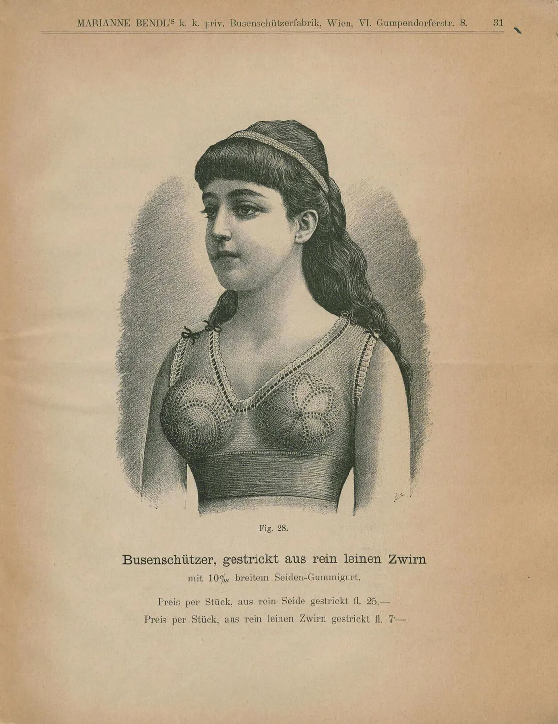 1893, im Gründungsjahr des Allgemeinen Österreichischen Frauenvereins, findet sich in der „Allgemeinen Frauen-Zeitung“, der Vereinszeitung der österreichisch-ungarischen Frauenvereine, ein längerer Artikel über dieses neuartige Produkt aus Wien. Mathilde Korn, Mitherausgeberin dieser Zeitung, schrieb: „Das Mieder ist der Feind der Gesundheit des Weibes, die Aerzte und Tausende von Frauen wissen davon zu erzählen und doch ist es bis heute nicht möglich gewesen, diesem Feinde seine Opfer zu entreißen. […] Einer Frau war es vorbehalten, dem Feinde ihres Geschlechts ein Paroli zu bieten. Frau Marianne Bendl, die Erfinderin des patentierten Busenschützers […].“
